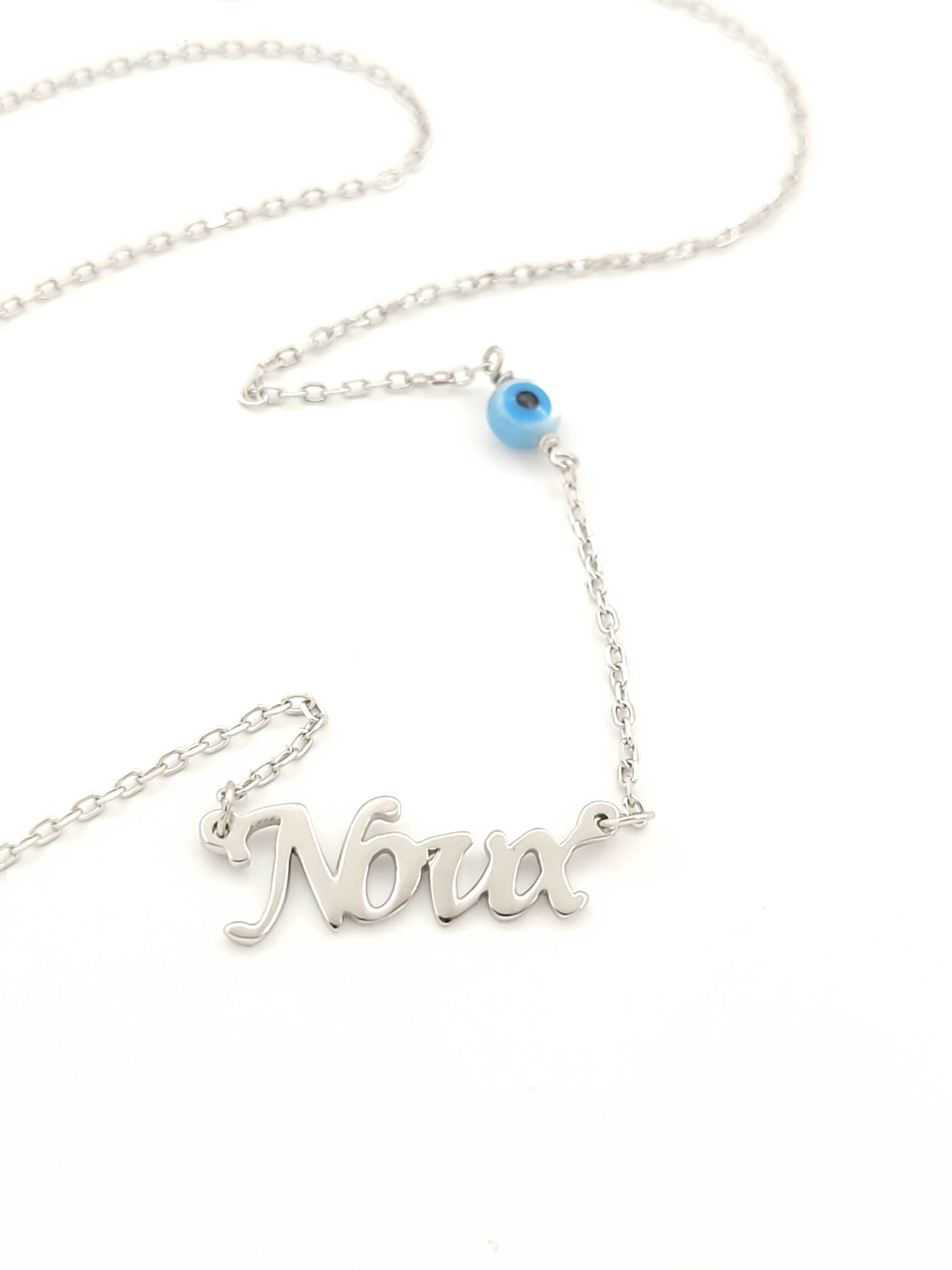 Ασημένιο Γυναικείο Κολιέ “Νονά”, Με Ματάκι