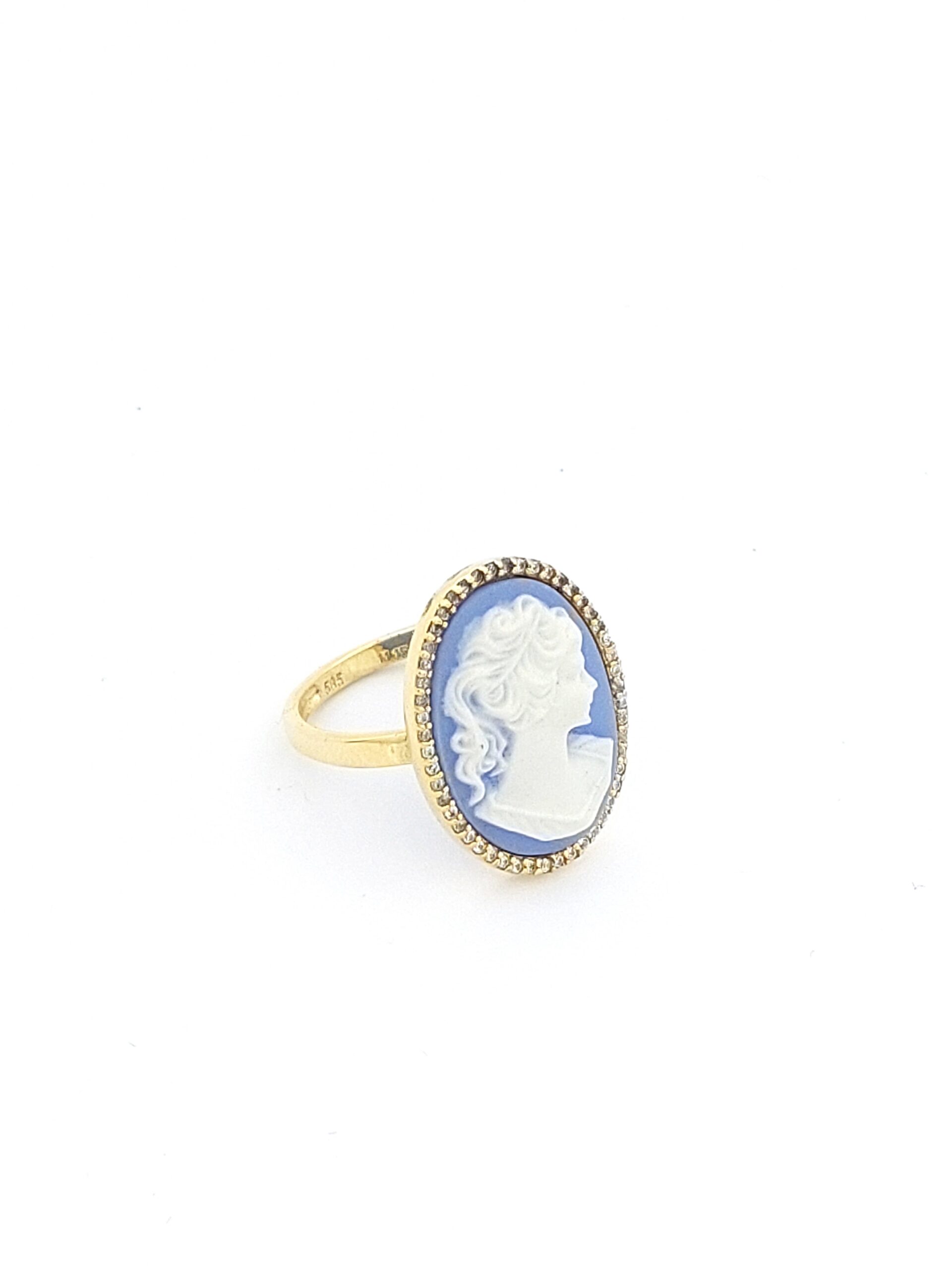 Χρυσό Γυναικείο Δαχτυλίδι Κ14 Της MetronGold Με Μπλε Καμέο Και Ζιργκόν