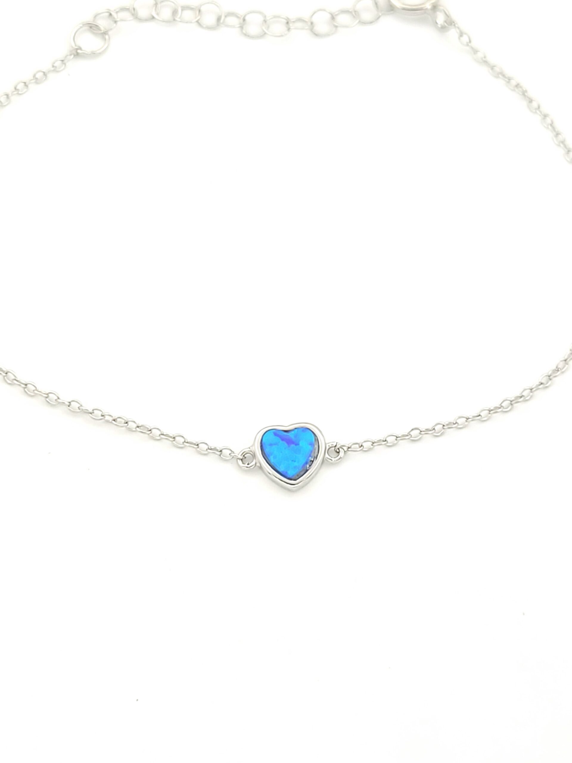 Ασημένιο Γυναικείο Βραχιόλι, Με Καρδιά Και Μπλε Οπάλιο