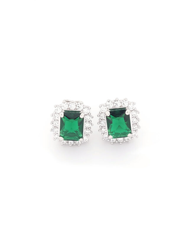Ασημένια Γυναικεία Σκουλαρίκια Καρφωτά, Με Ροζέτα Με Πράσινα Και Λευκά Ζιργκόν κωδ.109563