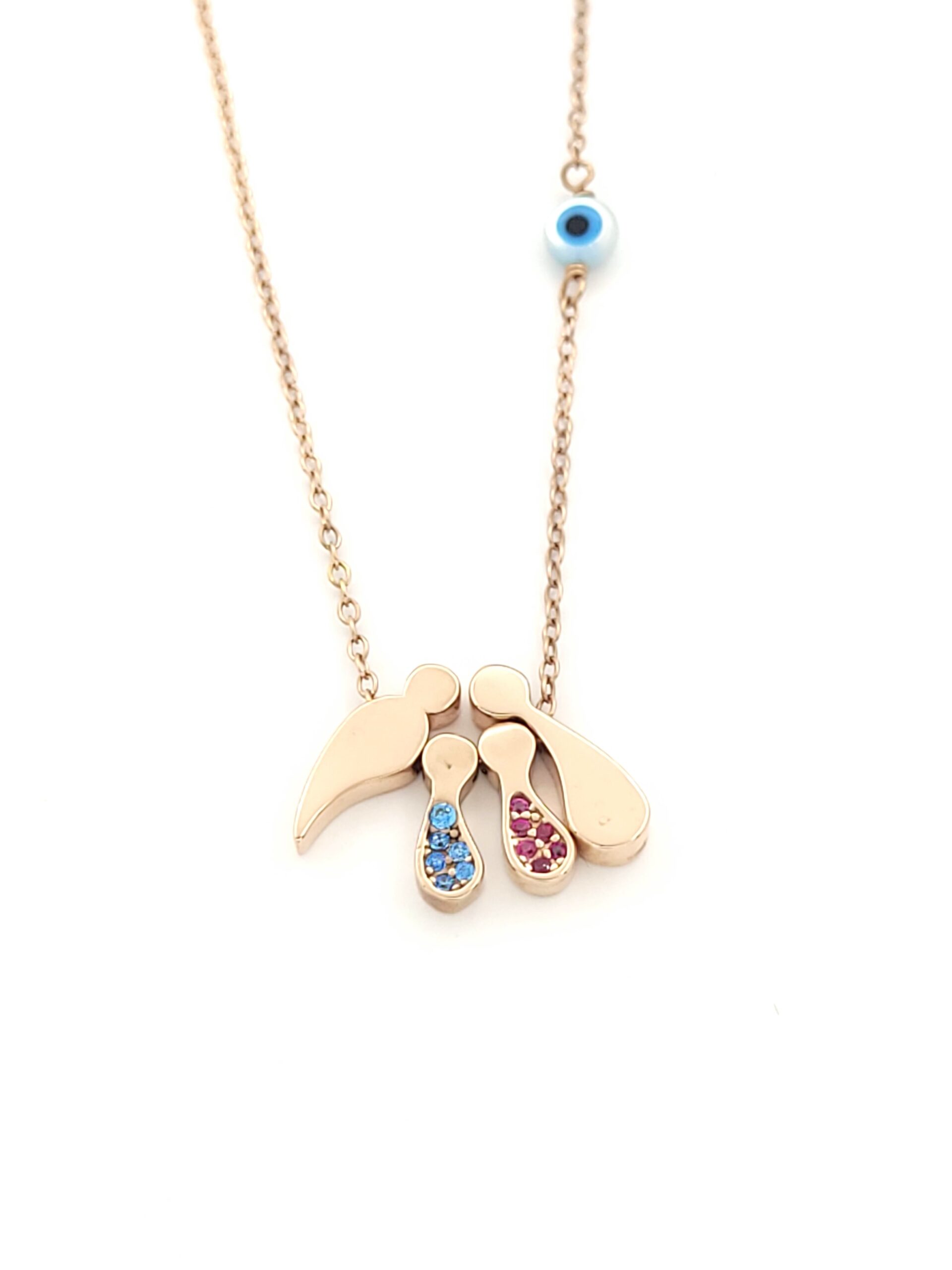 Ασημένιο Ροζ Gold Γυναικείο Κολιέ, Με Τετραμελή Οικογένεια Με Αγοράκι, Κοριτσάκι, Χρωματιστά Ζιργκόν Και Ματάκι κωδ.108576