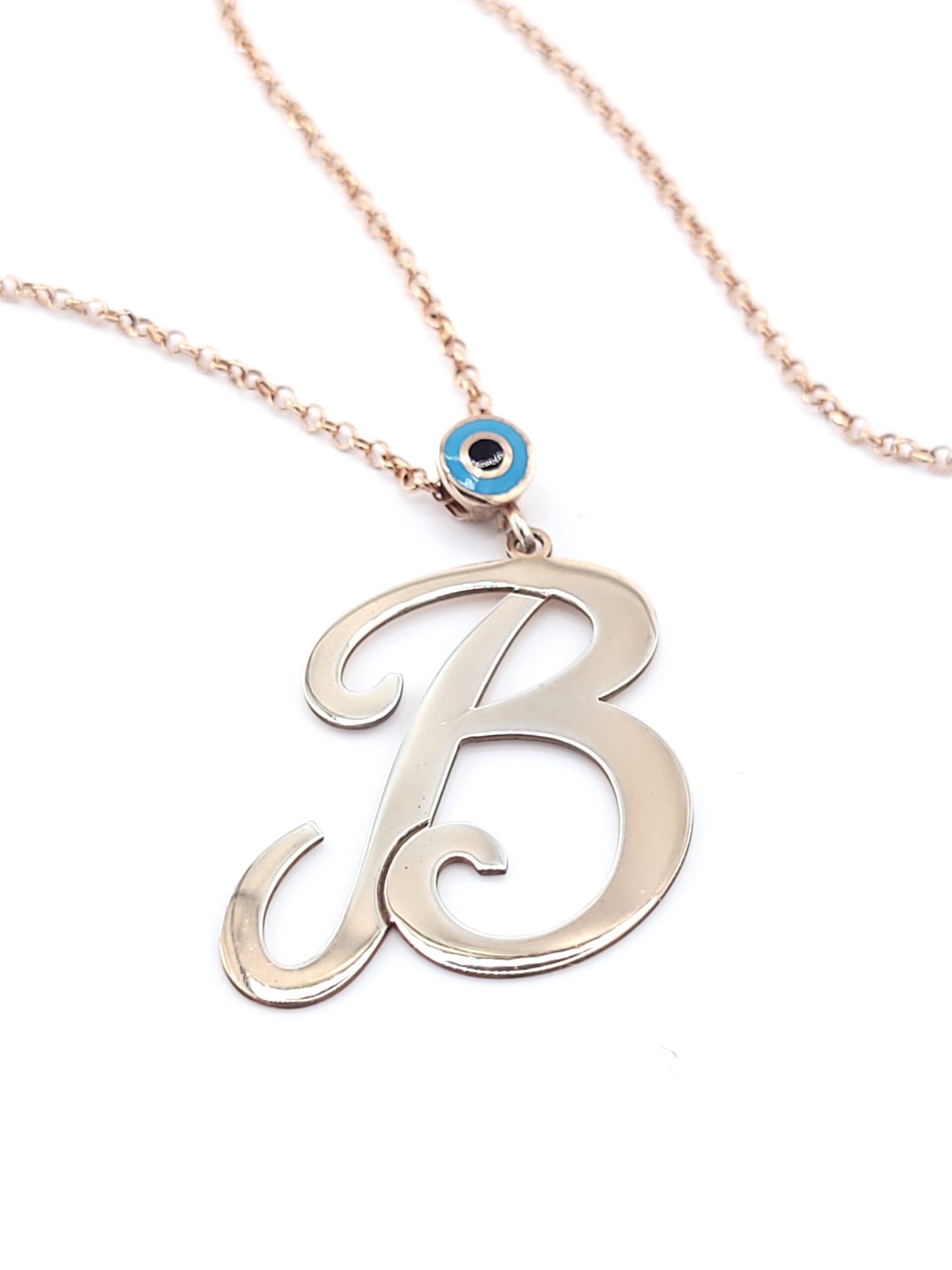 Ασημένιο Ροζ Gold Κολιέ, Με Γράμμα “Β” Και Ματάκι κωδ.105339