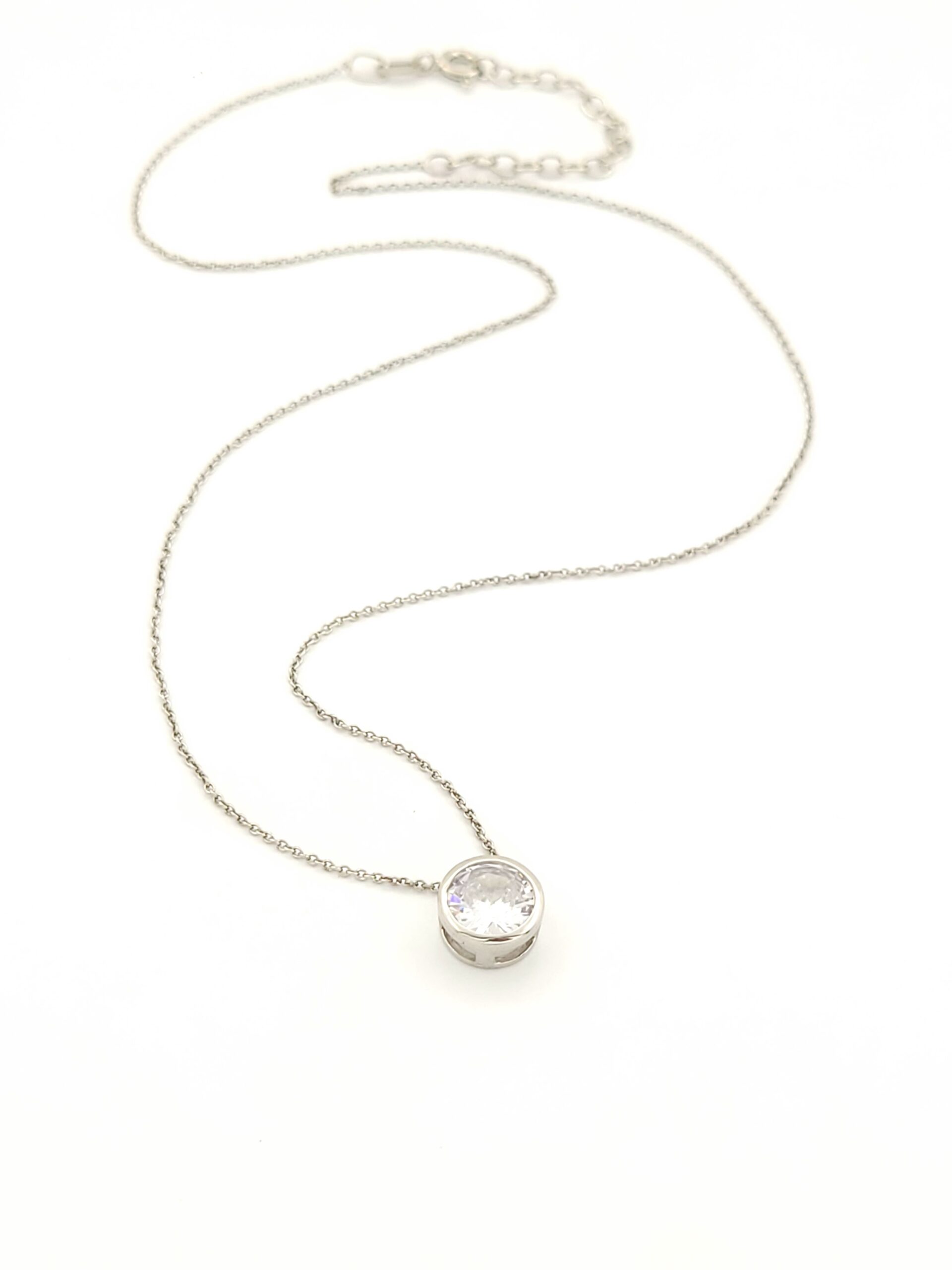 Ασημένιο Κολιέ Μονοπετράκι με Λευκό Ζιργκόν κωδ.107777