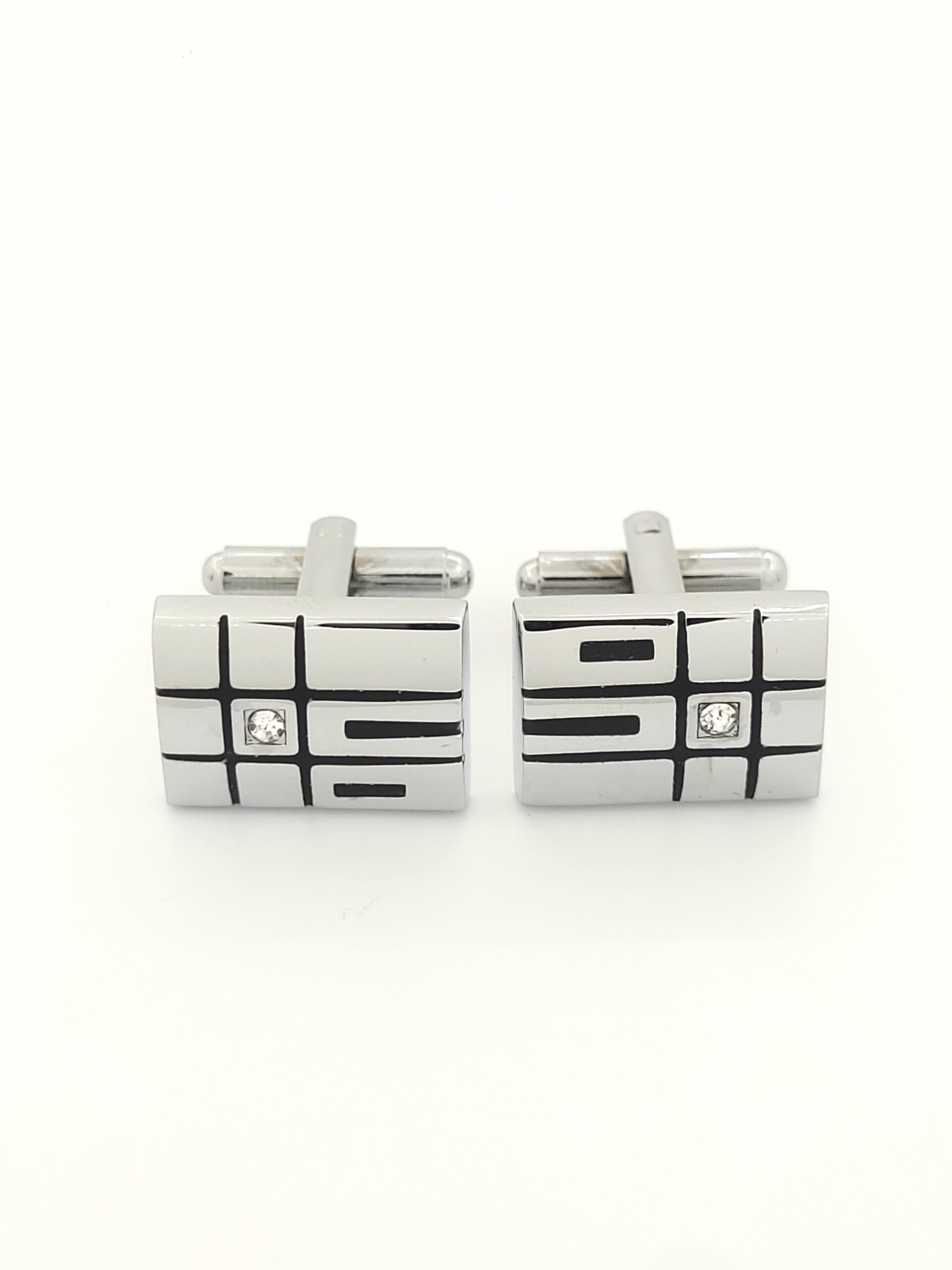 Ατσάλινα Ανδρικά Μανικετόκουμπα DND Steel, Με Μαύρο Σμάλτο Και Λευκό Ζιργκόν