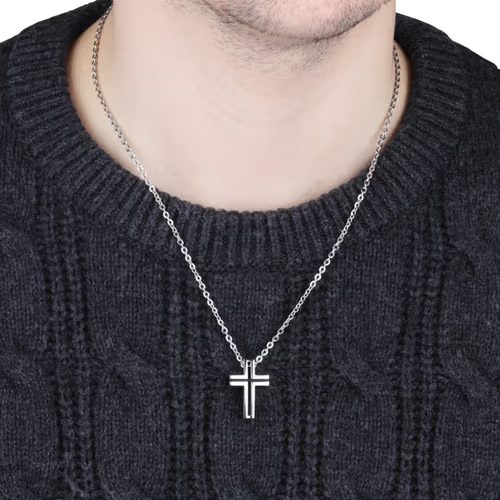 Ατσάλινο Ανδρικό Κολιέ Με Σταυρό Και Διπλή Αλυσίδα Police κωδ.PEAGN0001102