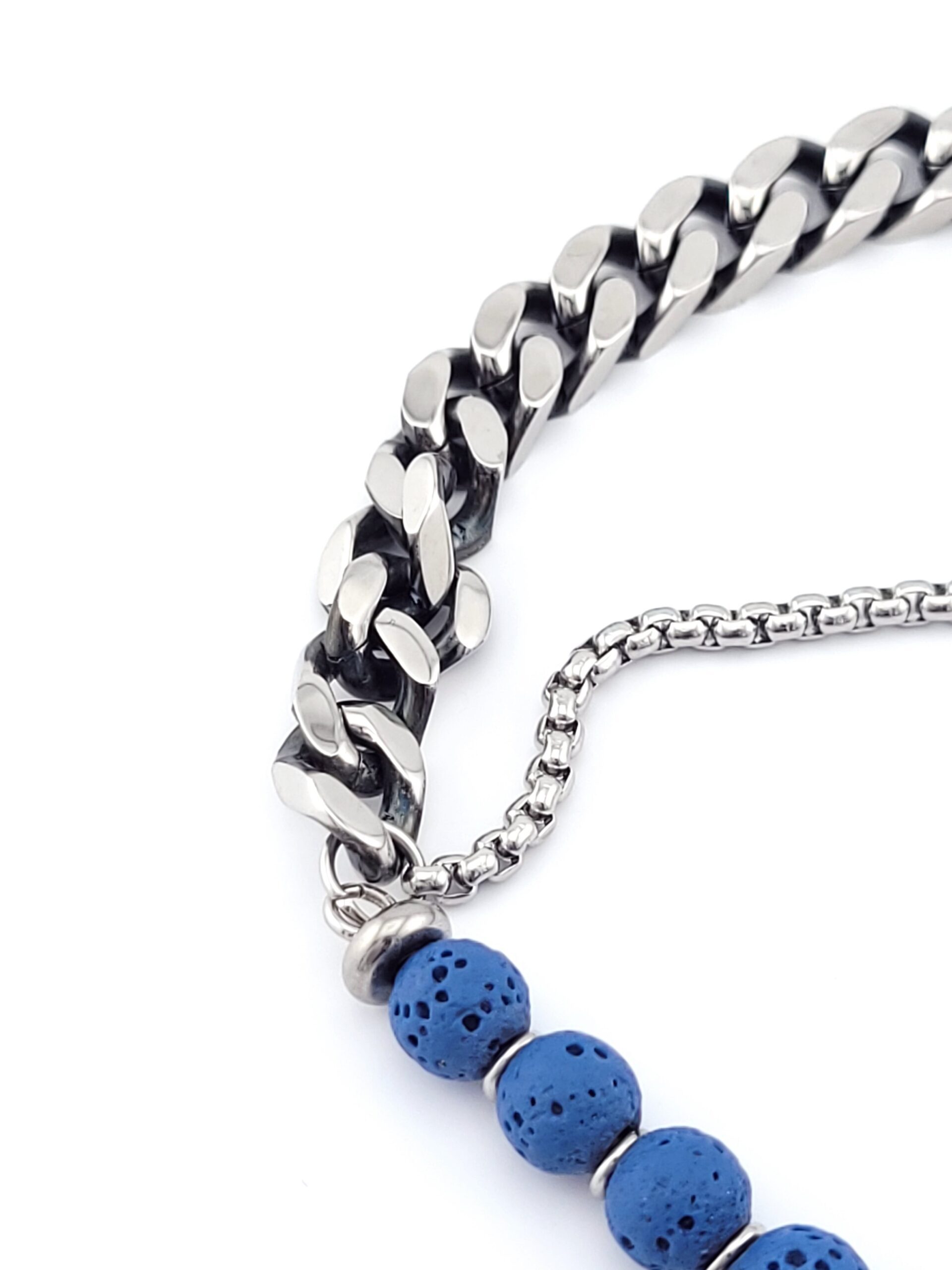 Ατσάλινο Ανδρικό Βραχιόλι Της Slevori Με Μπλε Λάβα Χρωματισμένη
