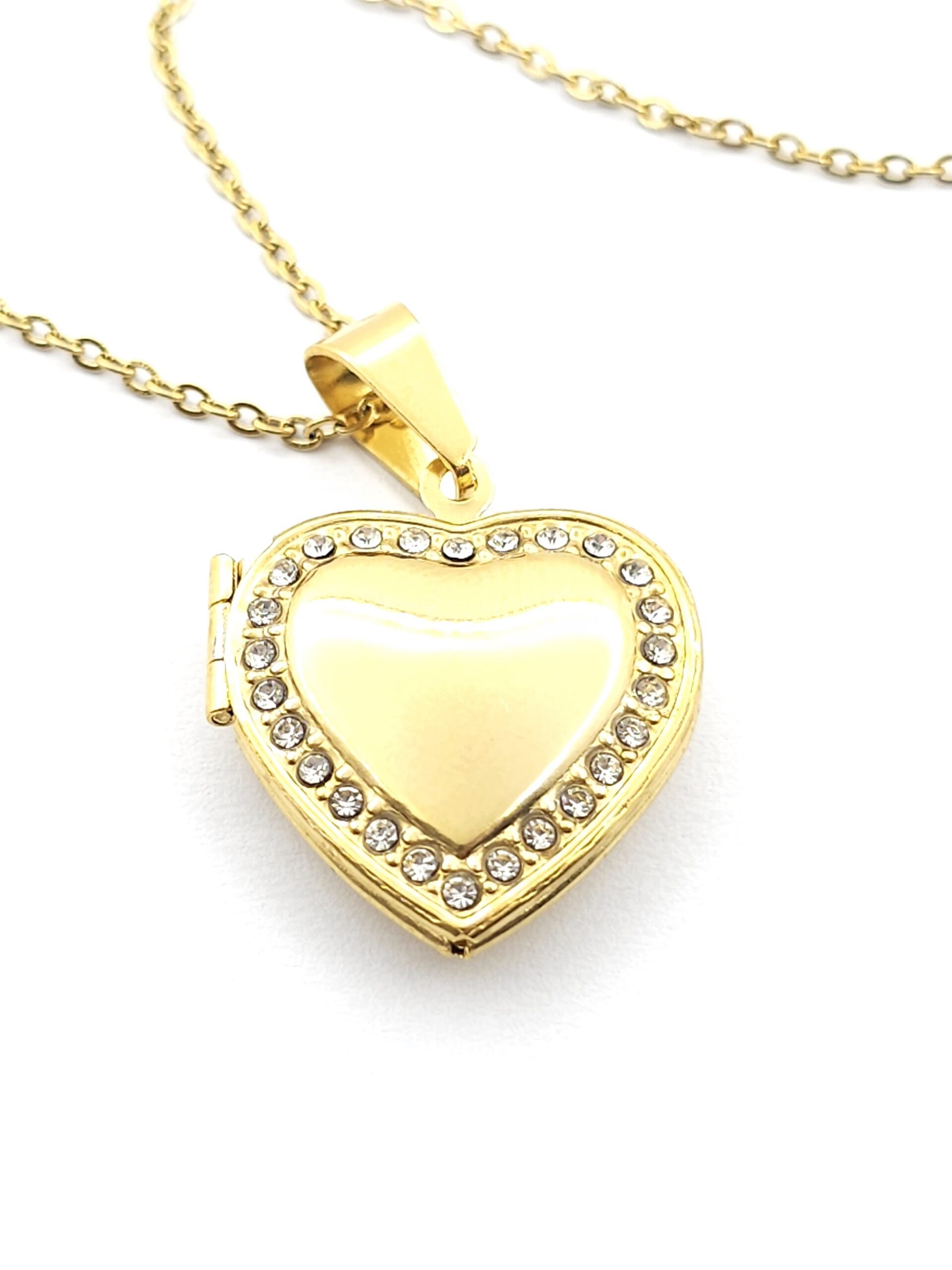 Ατσάλινο Επιχρυσωμένο Κολιέ, Με Μενταγιόν Καρδιά Για Φωτογραφία Με Ζιργκόν