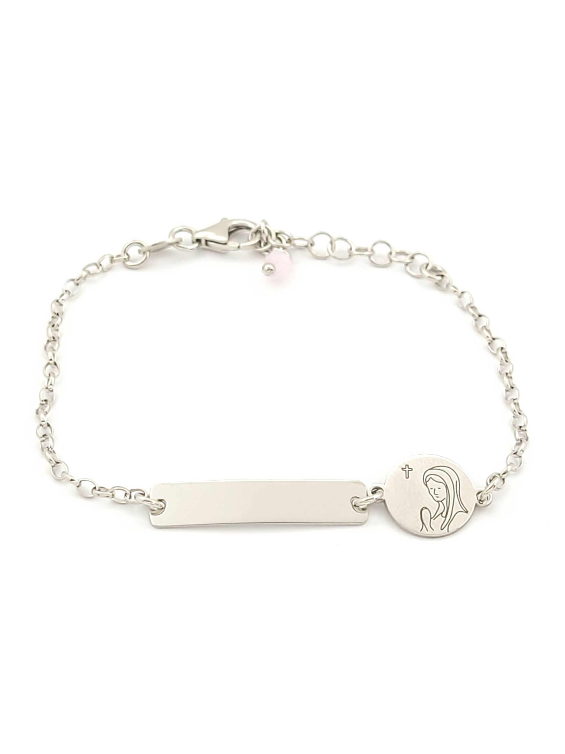 Ασημένιο Παιδικό Βραχιόλι Tαυτότητα , Με Αναπαράσταση Της Παναγίας