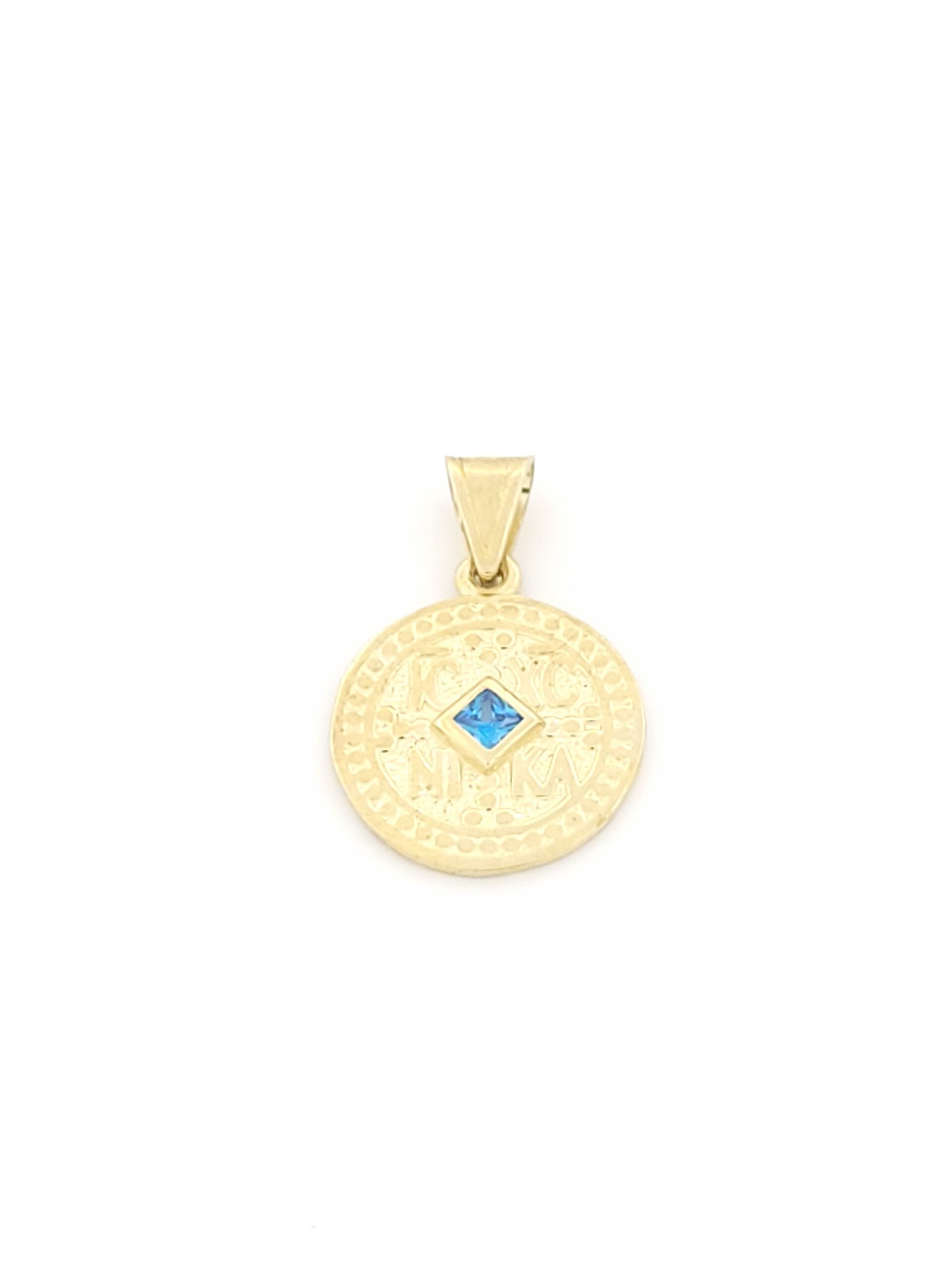 Χρυσό Γυναικείο Κρεμαστό K9, Με Κωνσταντινάτο Με Γαλάζιο Ζιργκόν κωδ.107039