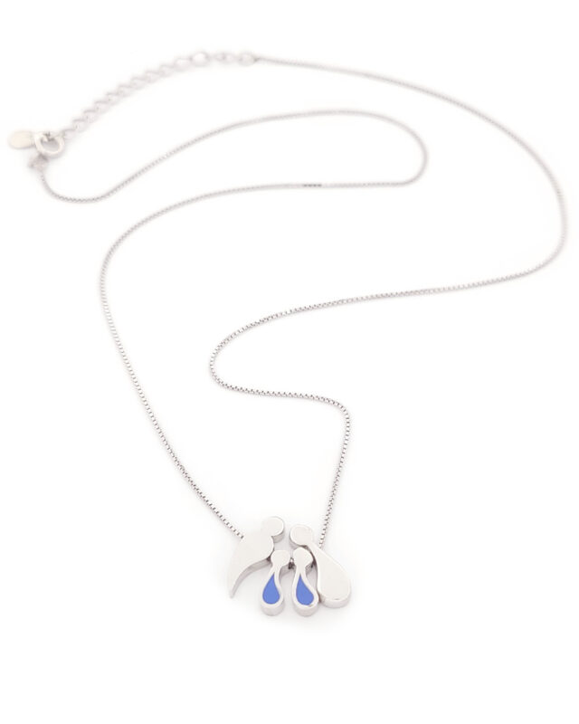 Ασημένιο Γυναικείο Κολιέ, Με Τετραμελή Οικογένεια Και Μπλε Σμάλτο κωδ.109513