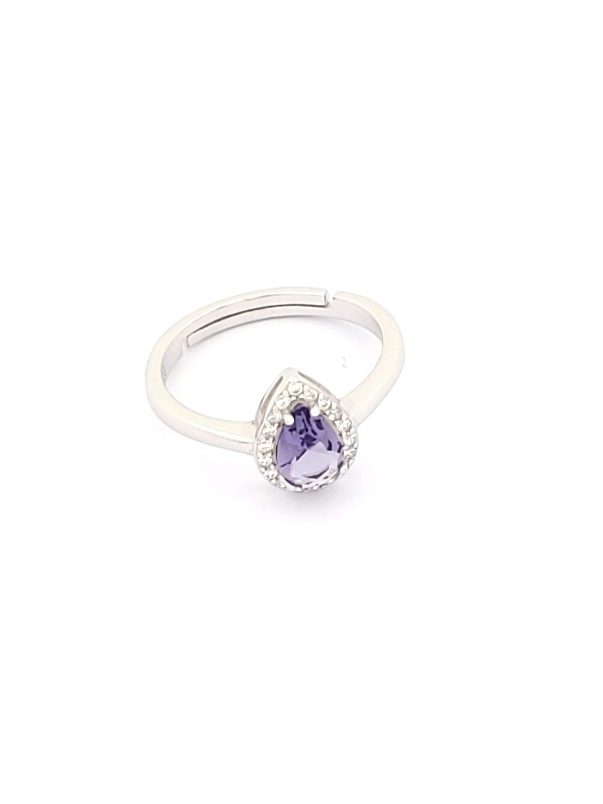 Γυναικείο Ασημένιο Δαχτυλίδι Δάκρυ-Μονόπετρο Με Λευκά Και Μωβ Ζιργκόν