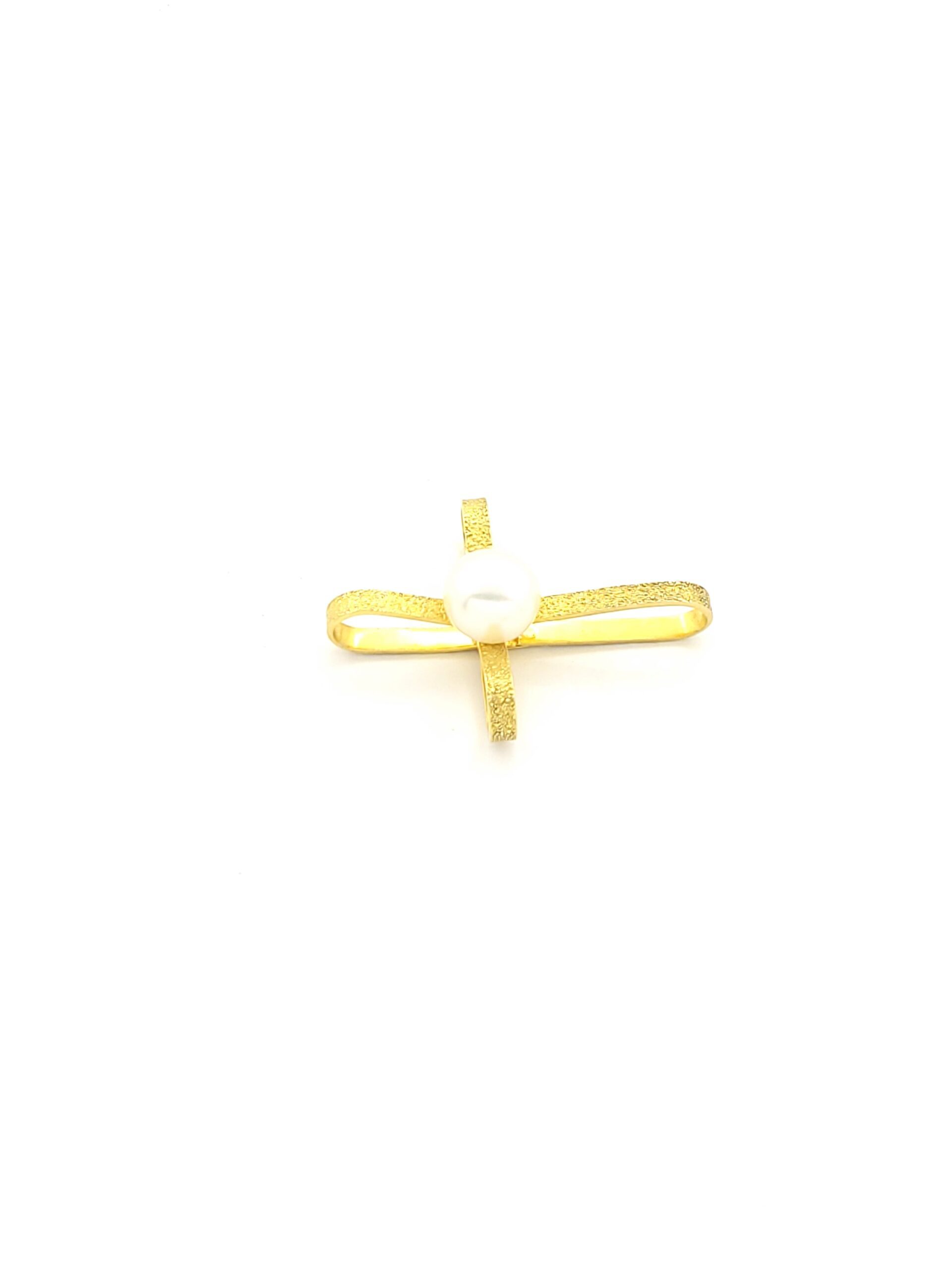 Χειροποίητος Χρυσός Γυναικείος Σταυρός Κ14, Με Μαργαριτάρι