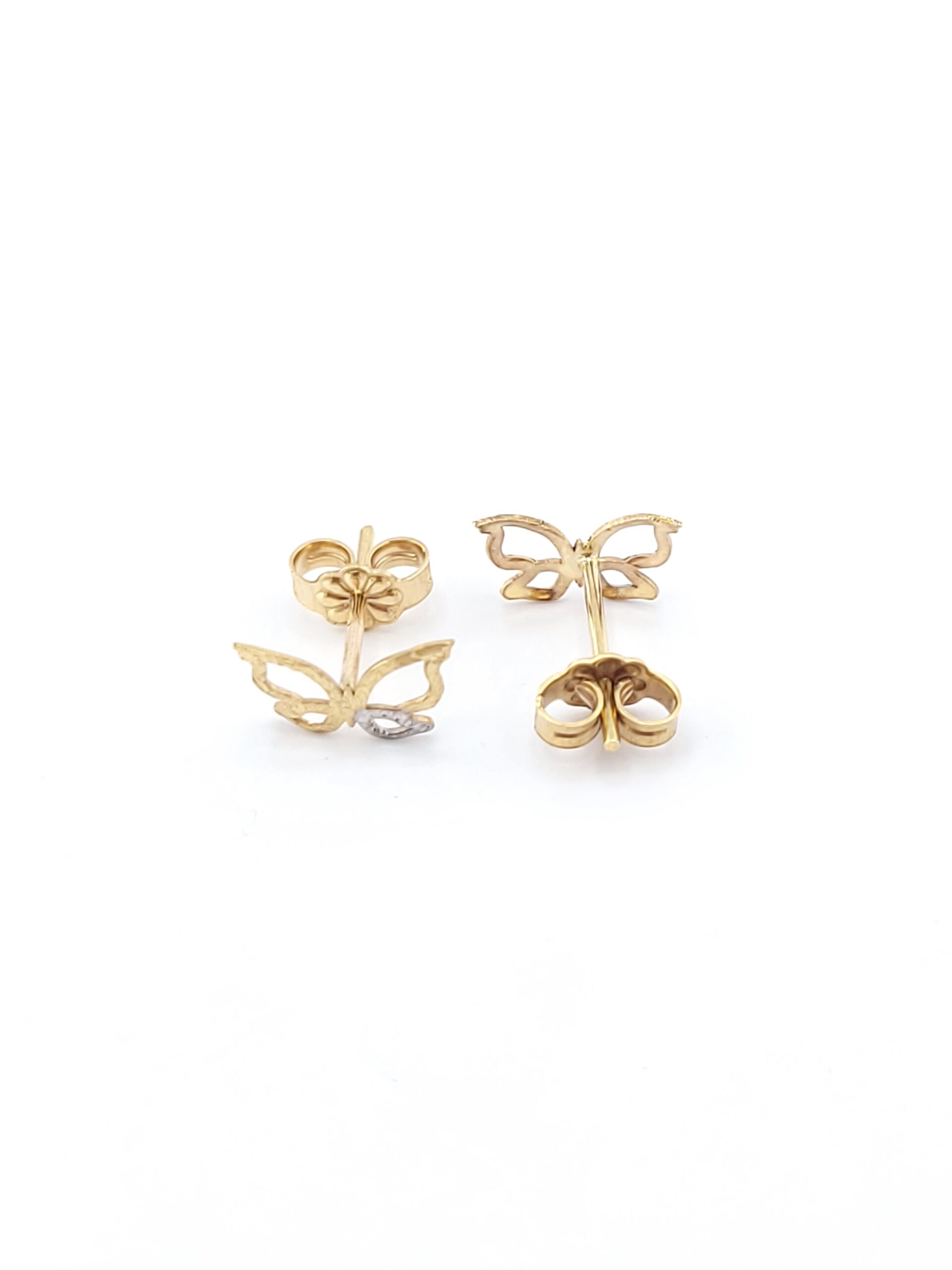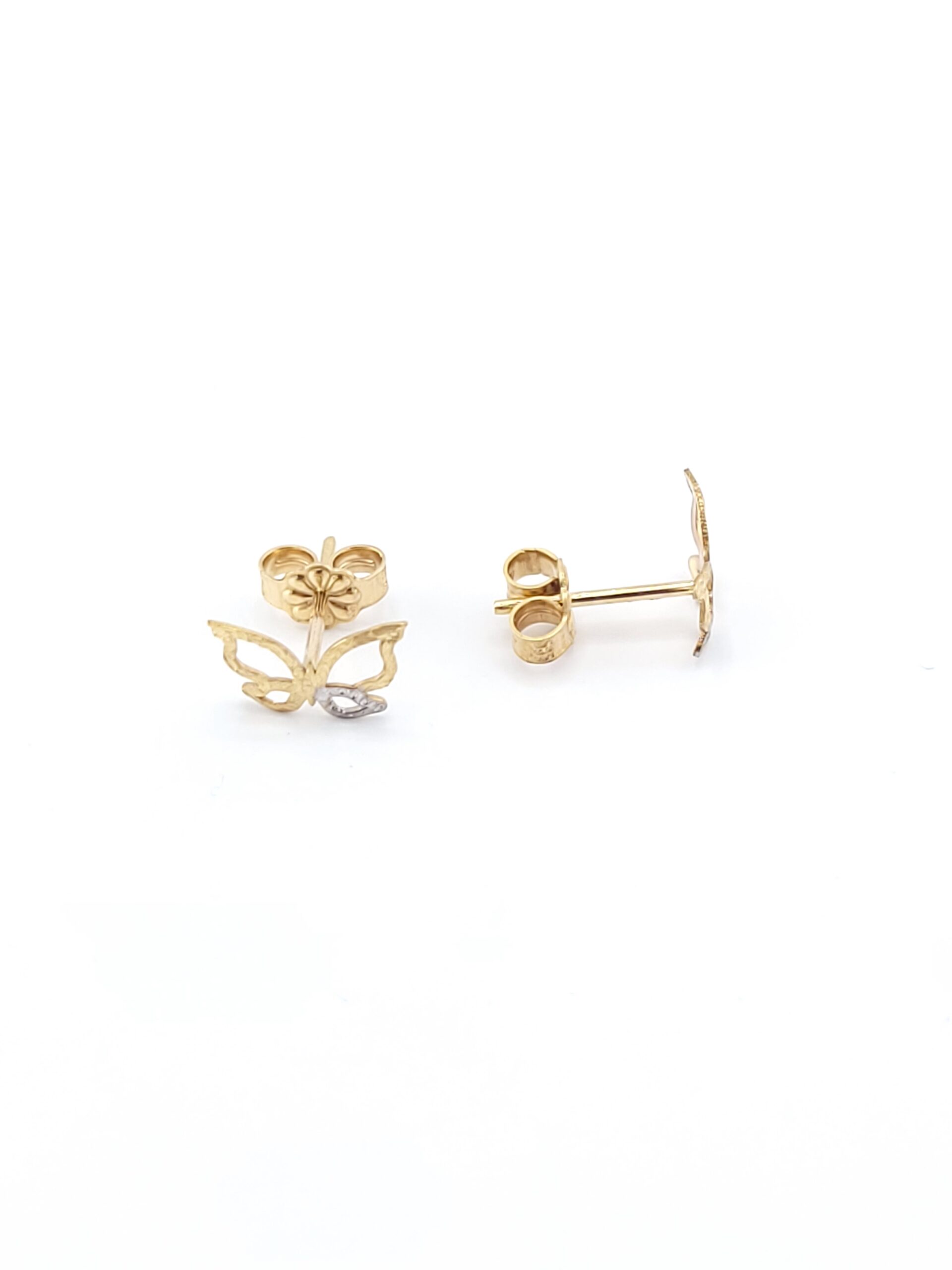 Χρυσά Δίχρωμα Χειροποίητα Σκουλαρίκια Καρφωτά Πεταλούδες Κ14