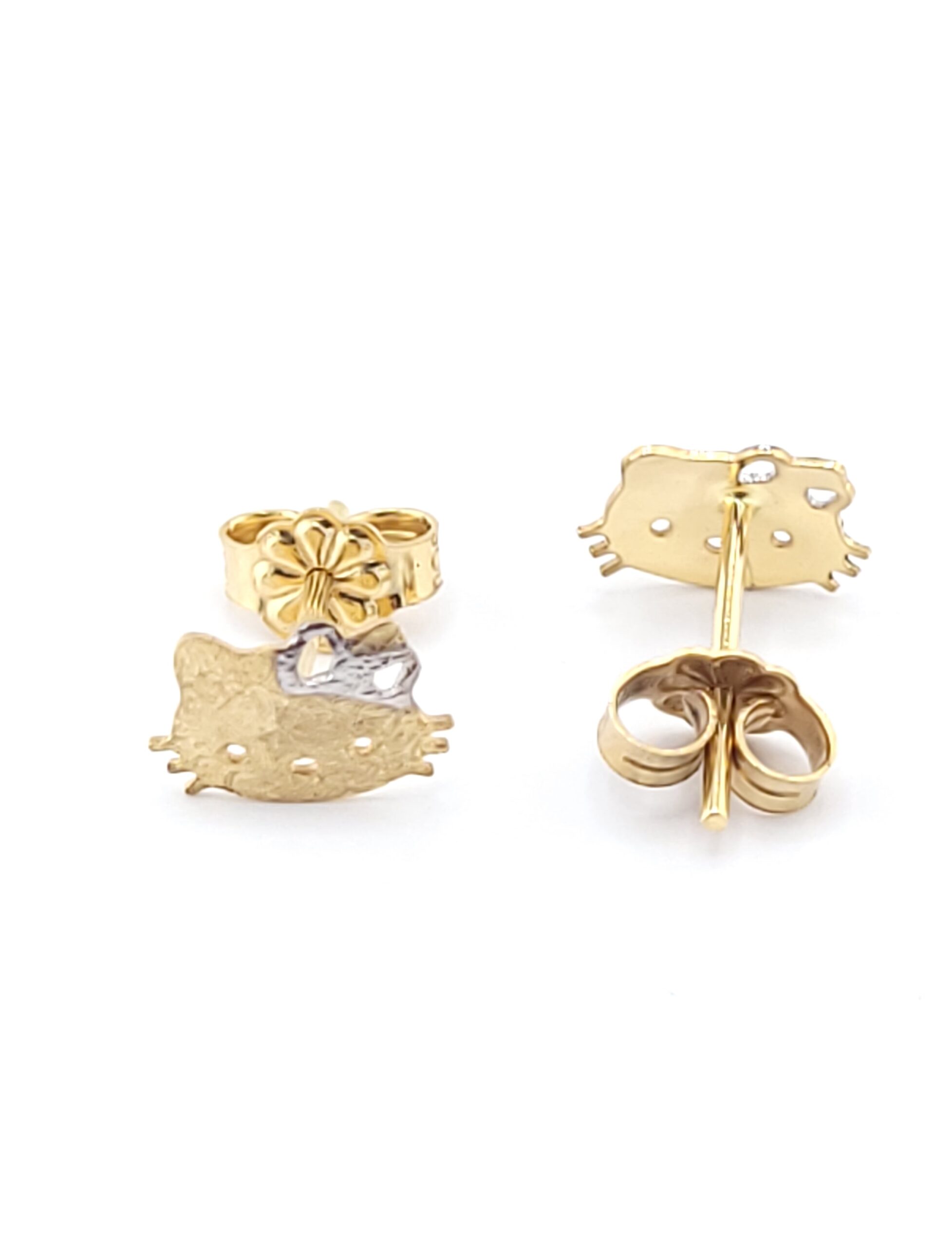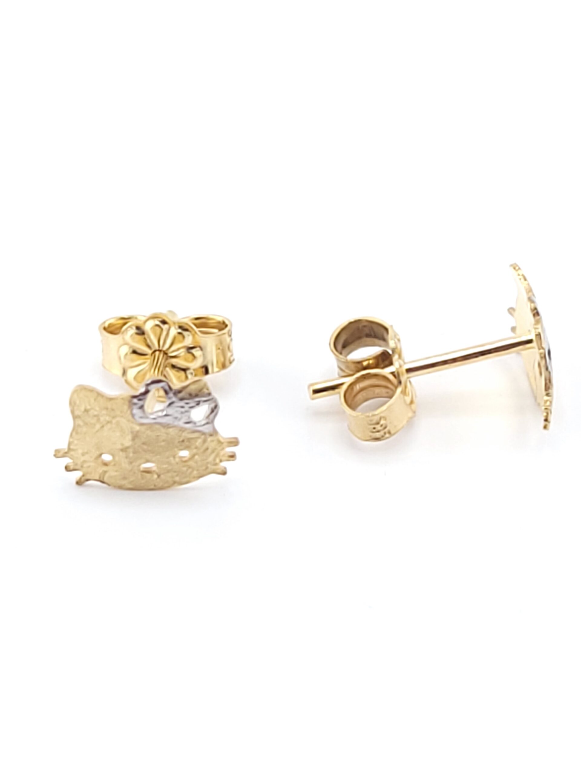 Χρυσά Δίχρωμα Παιδικά Χειροποίητα Σκουλαρίκια Καρφωτά Κ14, Με Γάτα Καρτούν