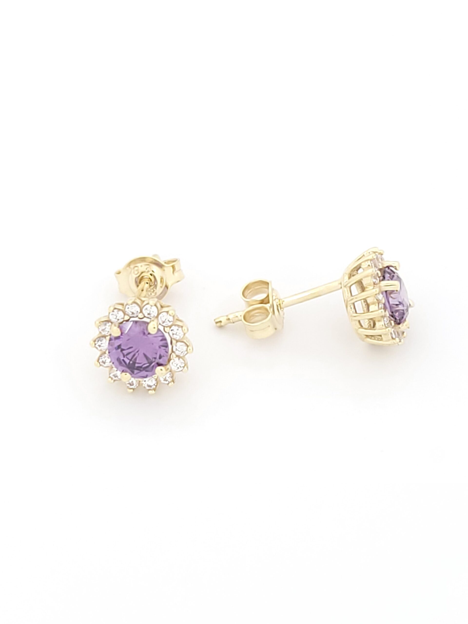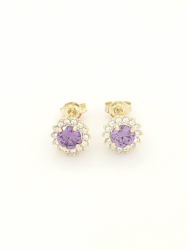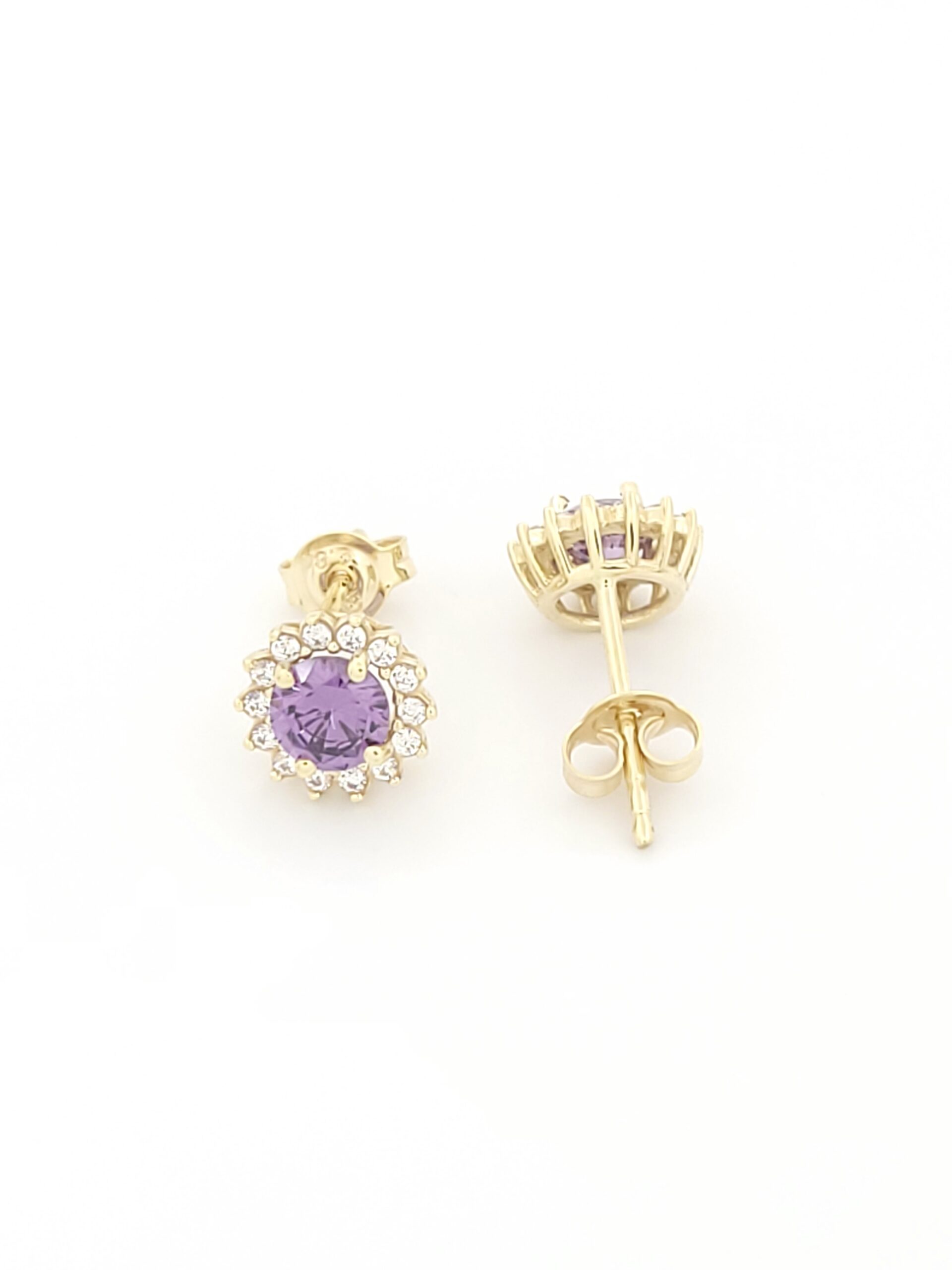 Χρυσά Γυναικεία Σκουλαρίκια Καρφωτά Ροζέτα Κ14 Της Filva, Με Μωβ Και Λευκά Ζιργκόν κωδ.106486