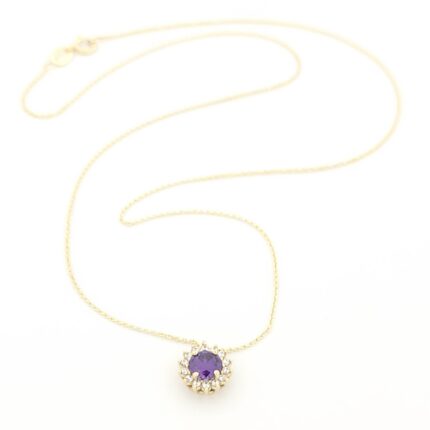 Γυναικείο Χρυσό Κολιέ Κ14 Της Filva, Με Μωβ Και Λευκά Ζιργκόν κωδ.106487