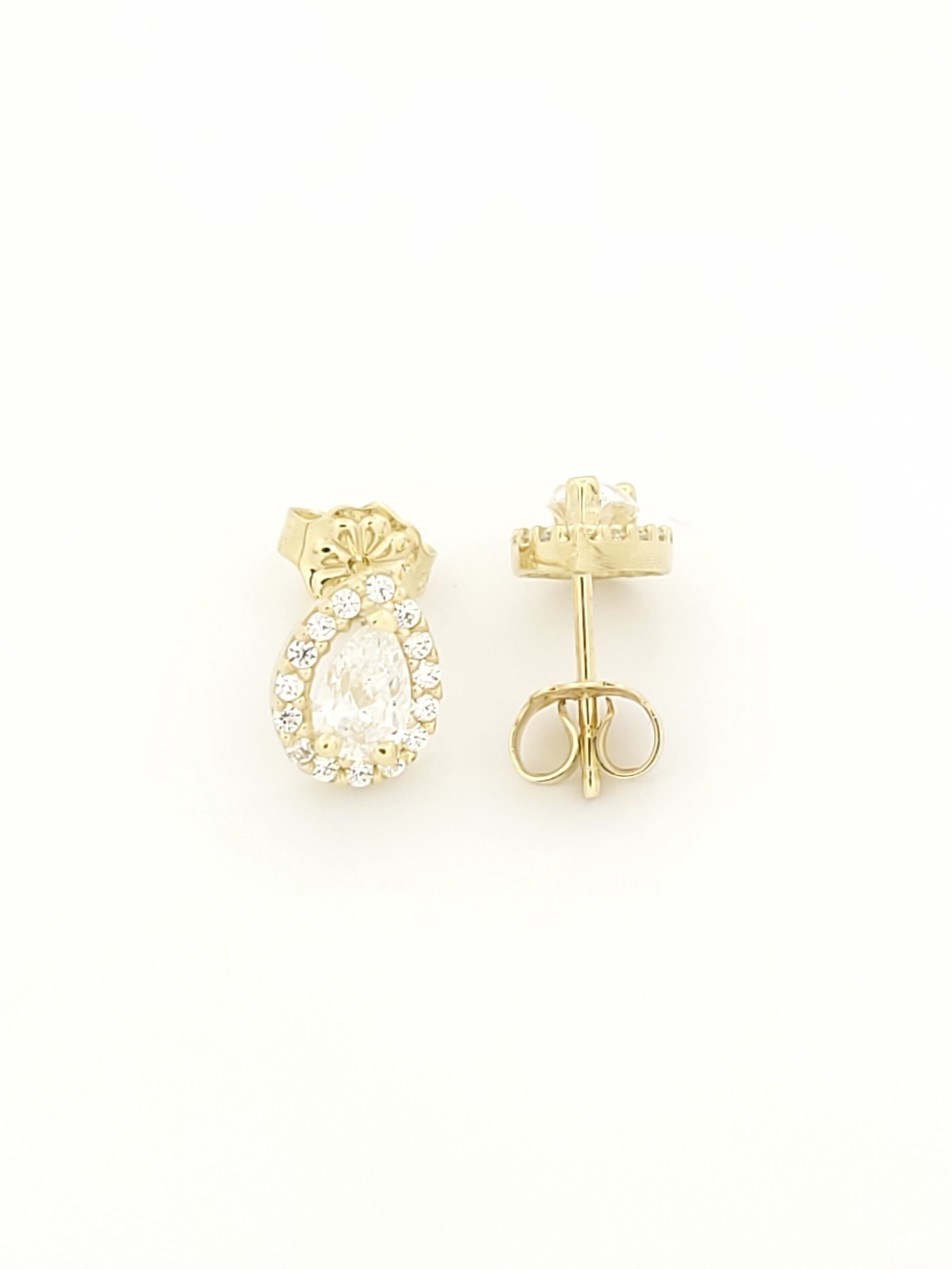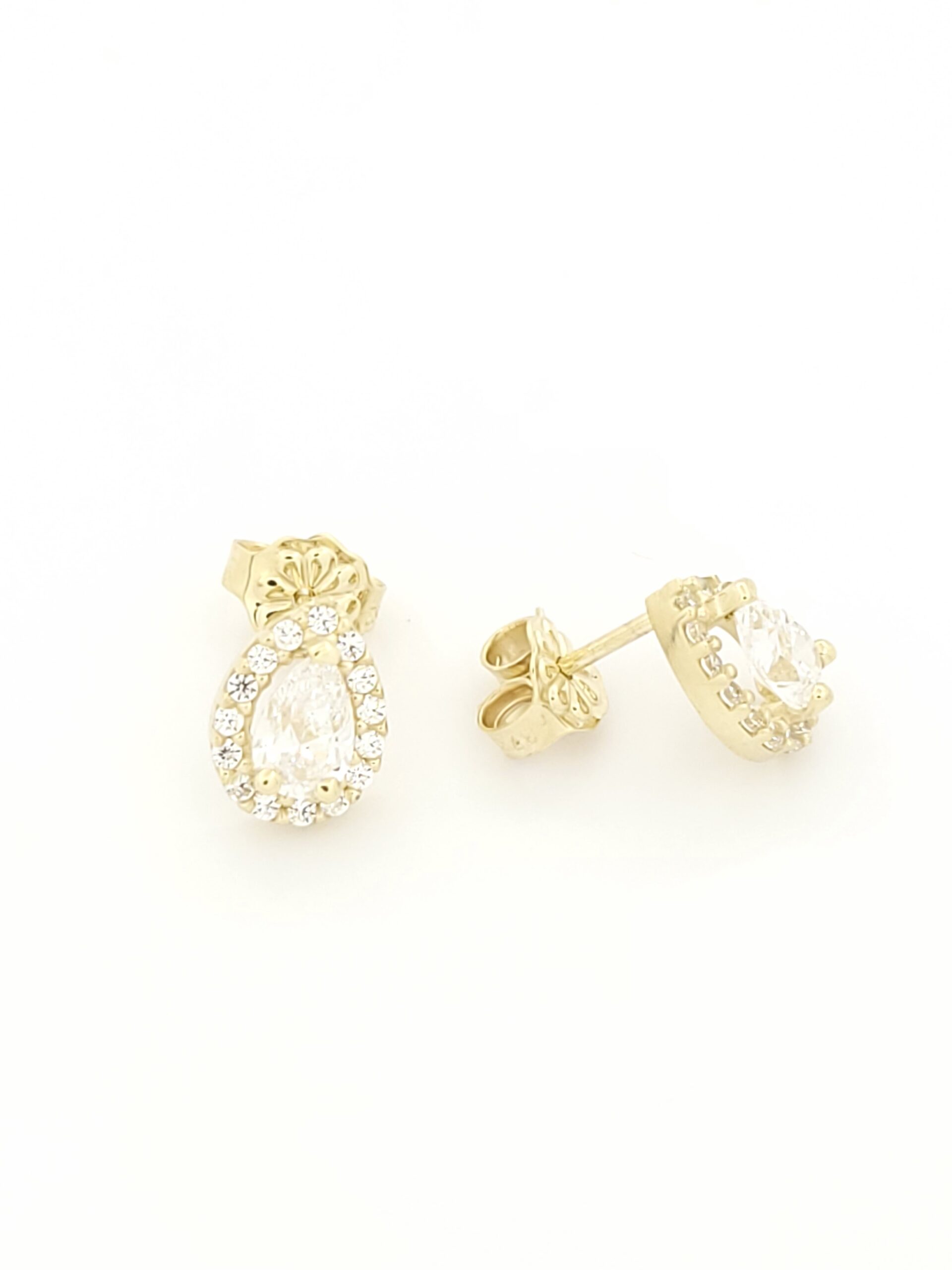 Χρυσά Γυναικεία Σκουλαρίκια Καρφωτά Ροζέτα Δάκρυ Κ9, Με Λευκά Ζιργκόν κωδ.106947