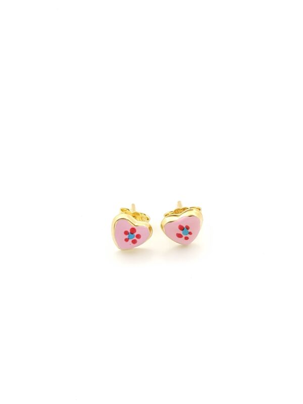 Χρυσά Παιδικά Σκουλαρίκια Καρδιά Καρφωτά Κ14 Με Χρωματιστό Σμάλτο κωδ.108505