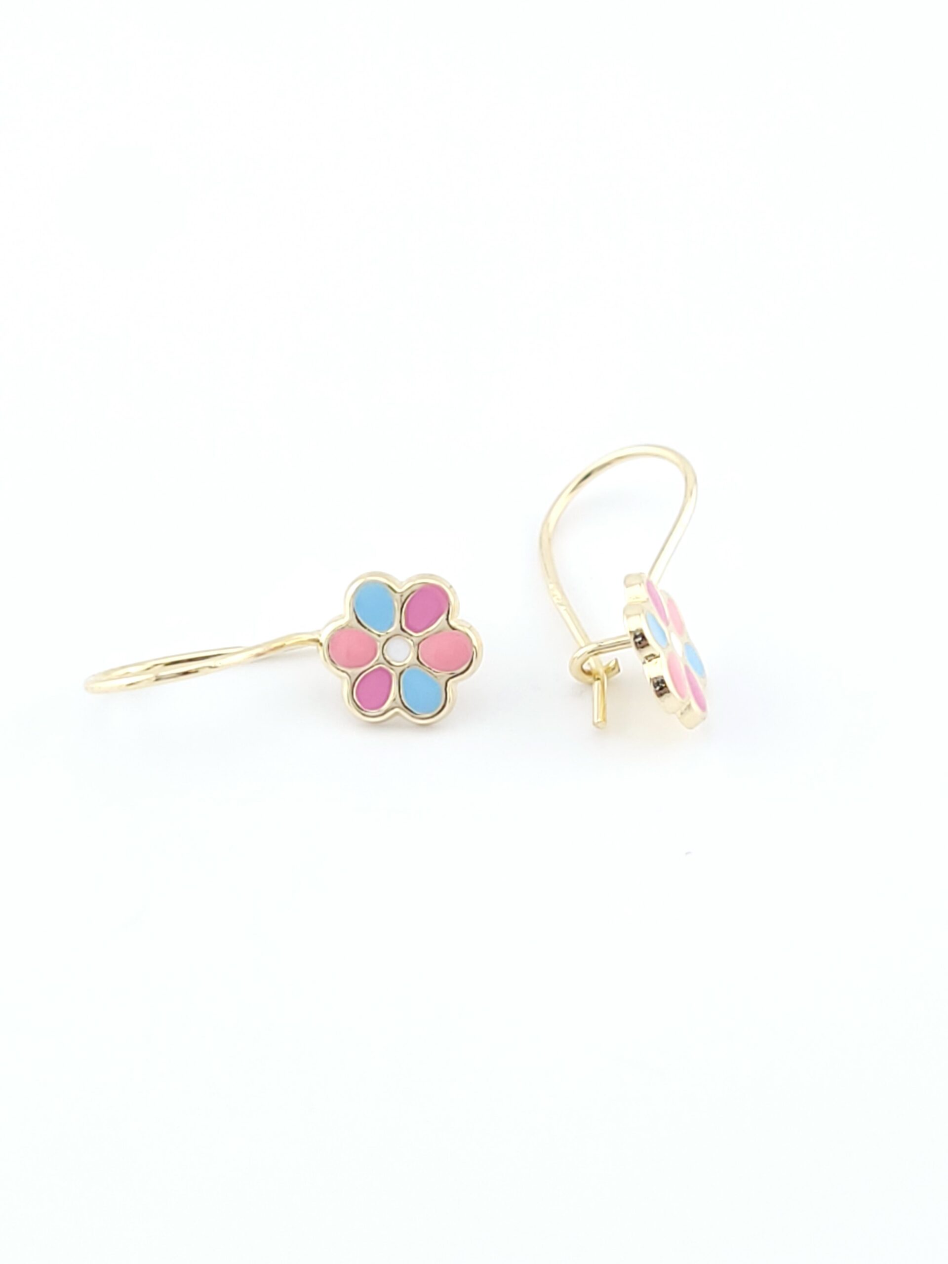 Χρυσά Παιδικά Σκουλαρίκια Κρεμαστά Κ9, Με Λουλούδια Με Σμάλτο κωδ.104940