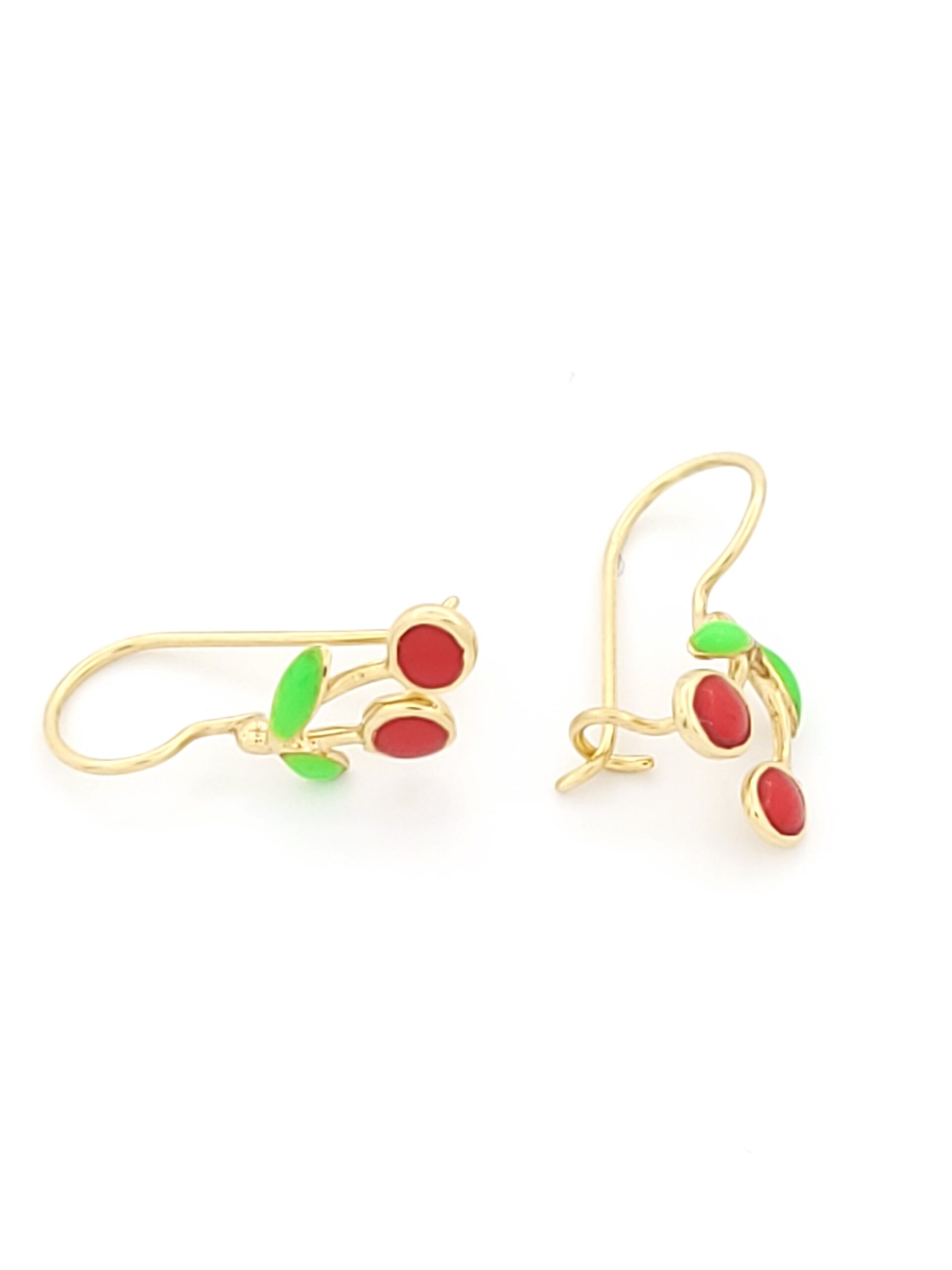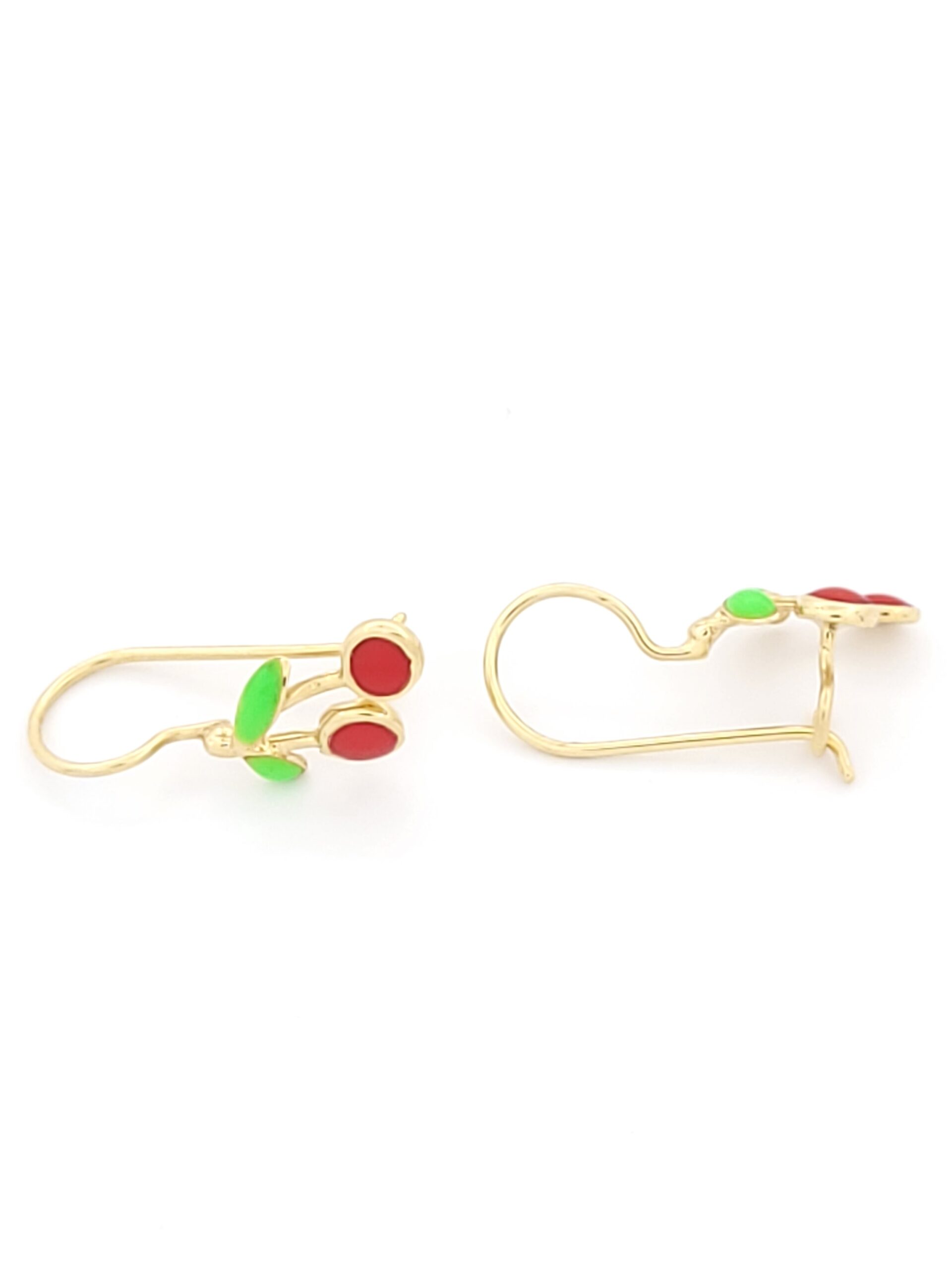 Χρυσά Παιδικά Σκουλαρίκια Κρεμαστά Κ9 Κεράσια, Με Σμάλτο