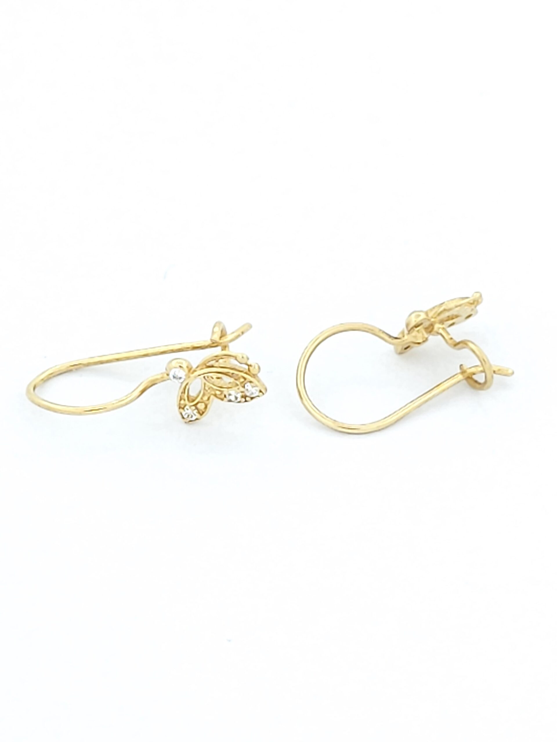 Χρυσά Παιδικά Σκουλαρίκια Κρεμαστά Κ9 Πεταλούδα, Με Ζιργκόν κωδ.105461