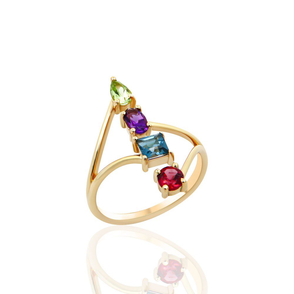 Γυναικείο Χρυσό Δαχτυλίδι Κ14 Της MetronGold, Με Περίδοτο, Αμέθυστο , Ροδολίτη Και London Blue Τοπάζι