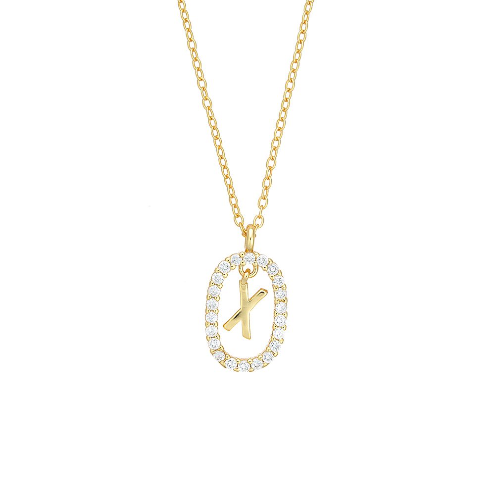 Ασημένιο Επιχρυσωμένο Γυναικείο Κολιέ, Με Γράμμα “Χ” Και Λευκά Ζιργκόν κωδ.17118-X