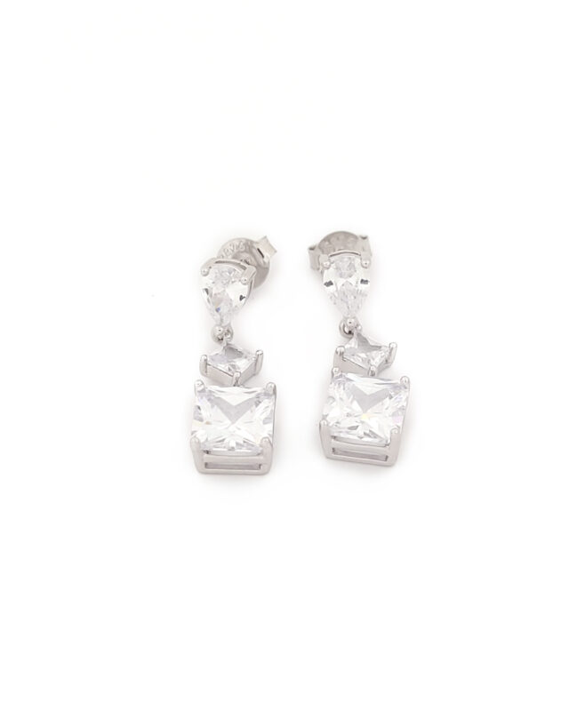 Ασημένια Γυναικεία Σκουλαρίκια Κρεμαστά Με Λευκά Ζιργκόν κωδ.109260