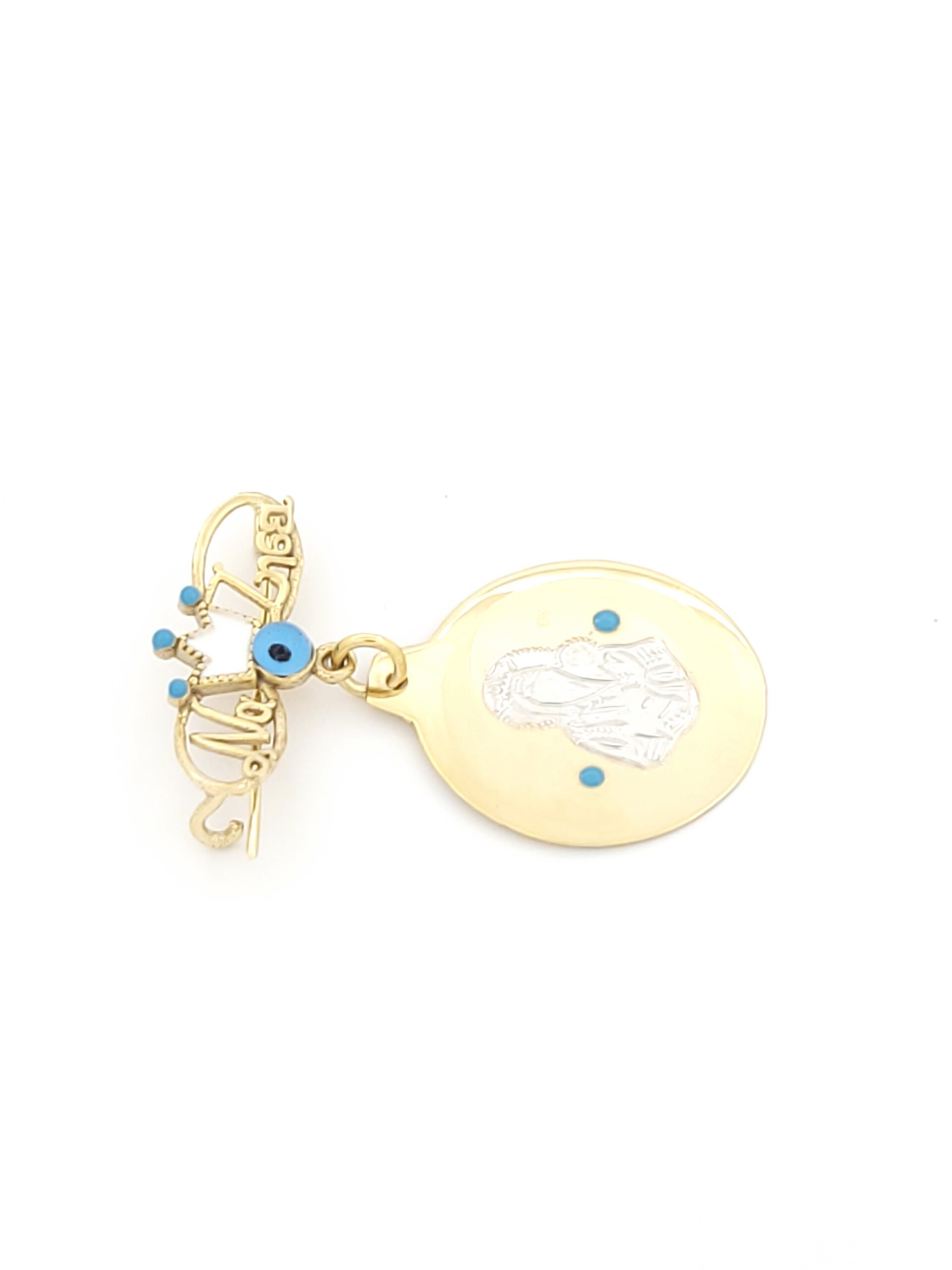 Ασημένιο Δίχρωμο Γούρι Διπλής Όψης, Με Ματάκι Και Παναγίτσα κωδ.109629