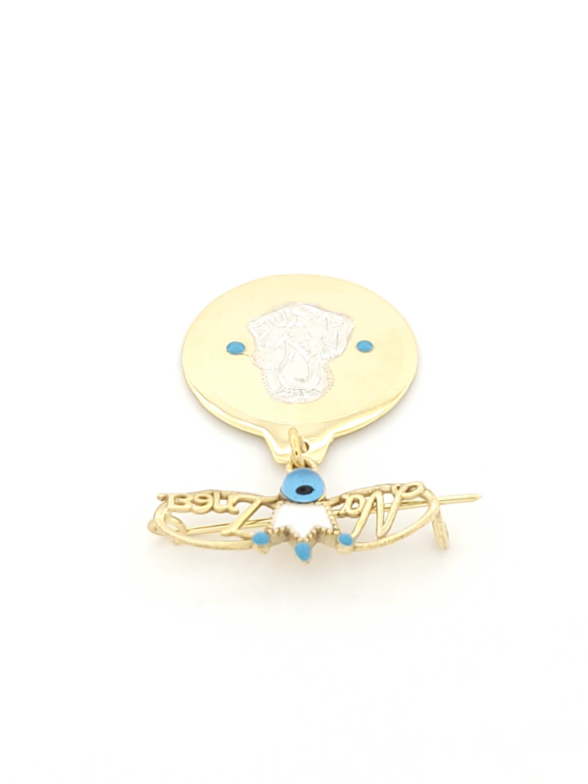 Χρυσή Δίχρωμη Παιδική Παραμάνα “Να Ζήσει” K9, Με Κορώνα Με Σμάλτο, Με Ματάκι Και Παναγίτσα
