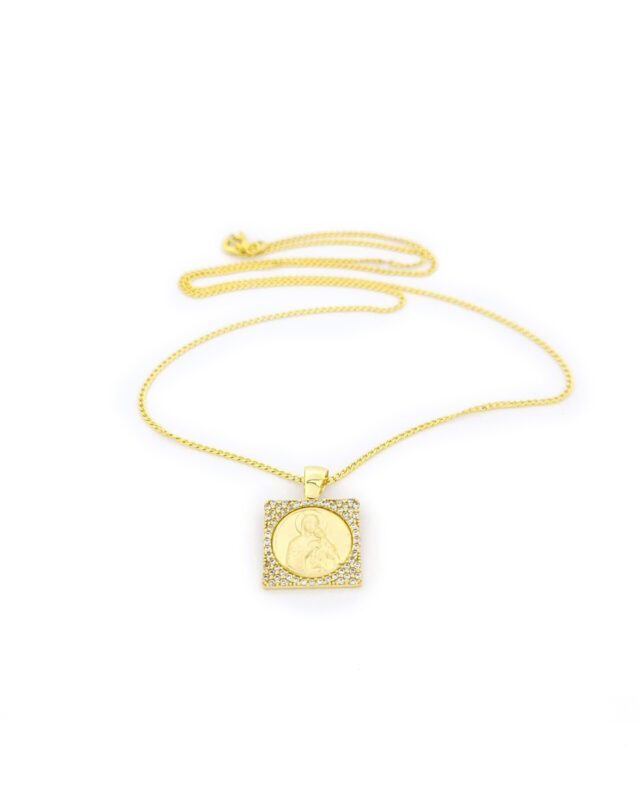 Ασημένιο Επιχρυσωμένο Γυναικείο Κολιέ Τετράγωνο,Με Παναγίτσα Με Ζιργκόν κωδ.102280