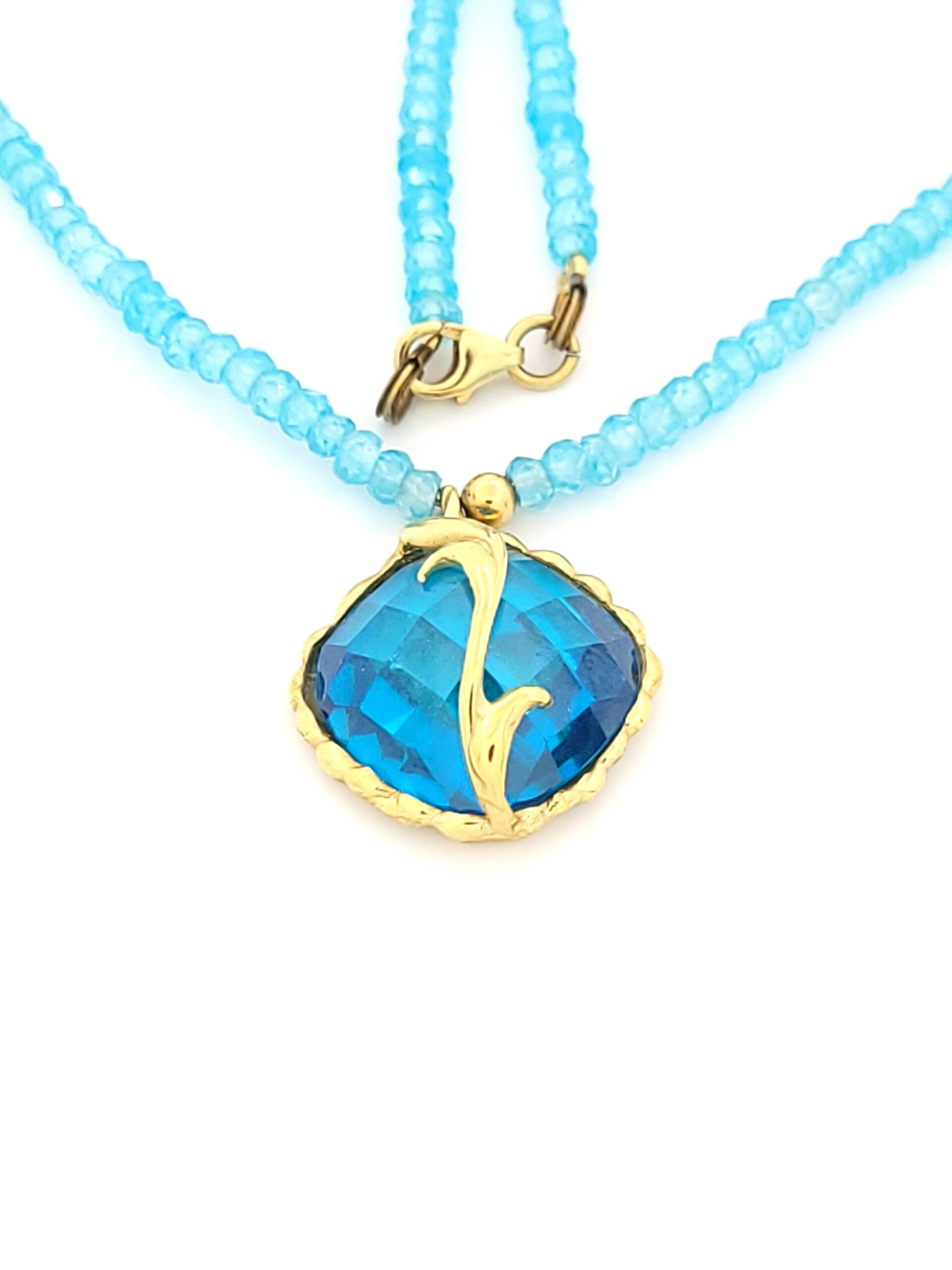 Χρυσό Χειροποίητο Γυναικείο Κολιέ Κ14 της MetronGold, Με Γαλάζιο Χαλαζία και Τοπάζ