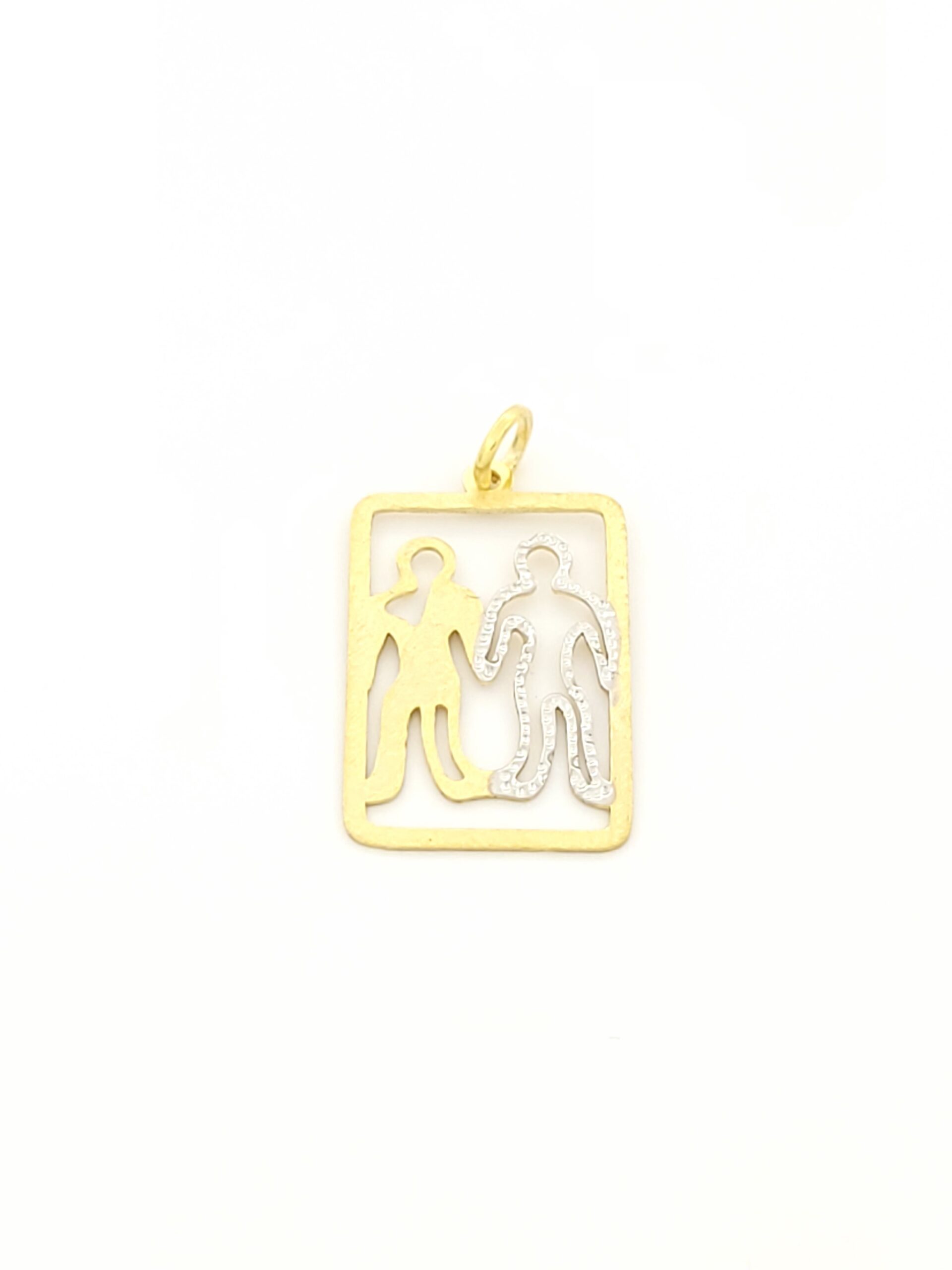 Χρυσό Δίχρωμο Γυναικείο Χειροποίητο Κρεμαστό K14, Με Ζώδιο Δίδυμοι κωδ.105910