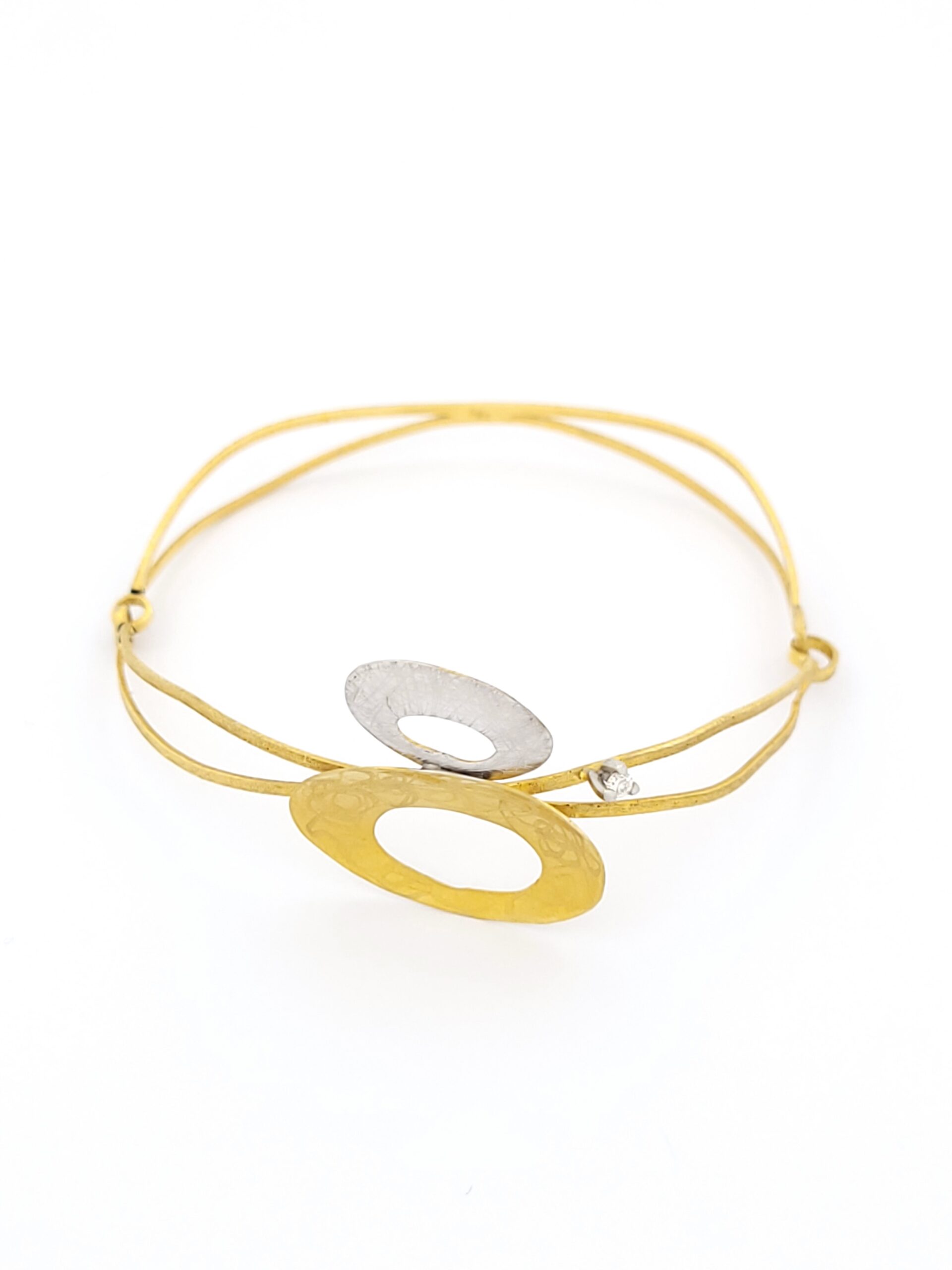 Χρυσό Δίχρωμο Γυναικείο Χειροποίητο Βραχιόλι Κ14, Με Διαμάντι