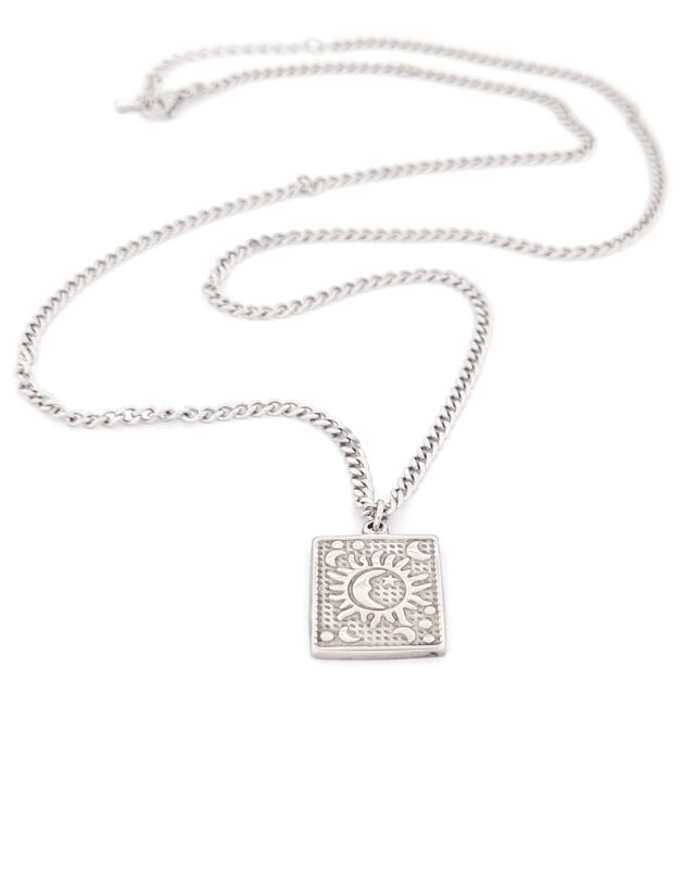 Ατσάλινο Κολιέ Με Πλακέτα, Με Ήλιο Και Φεγγάρι κωδ.109602