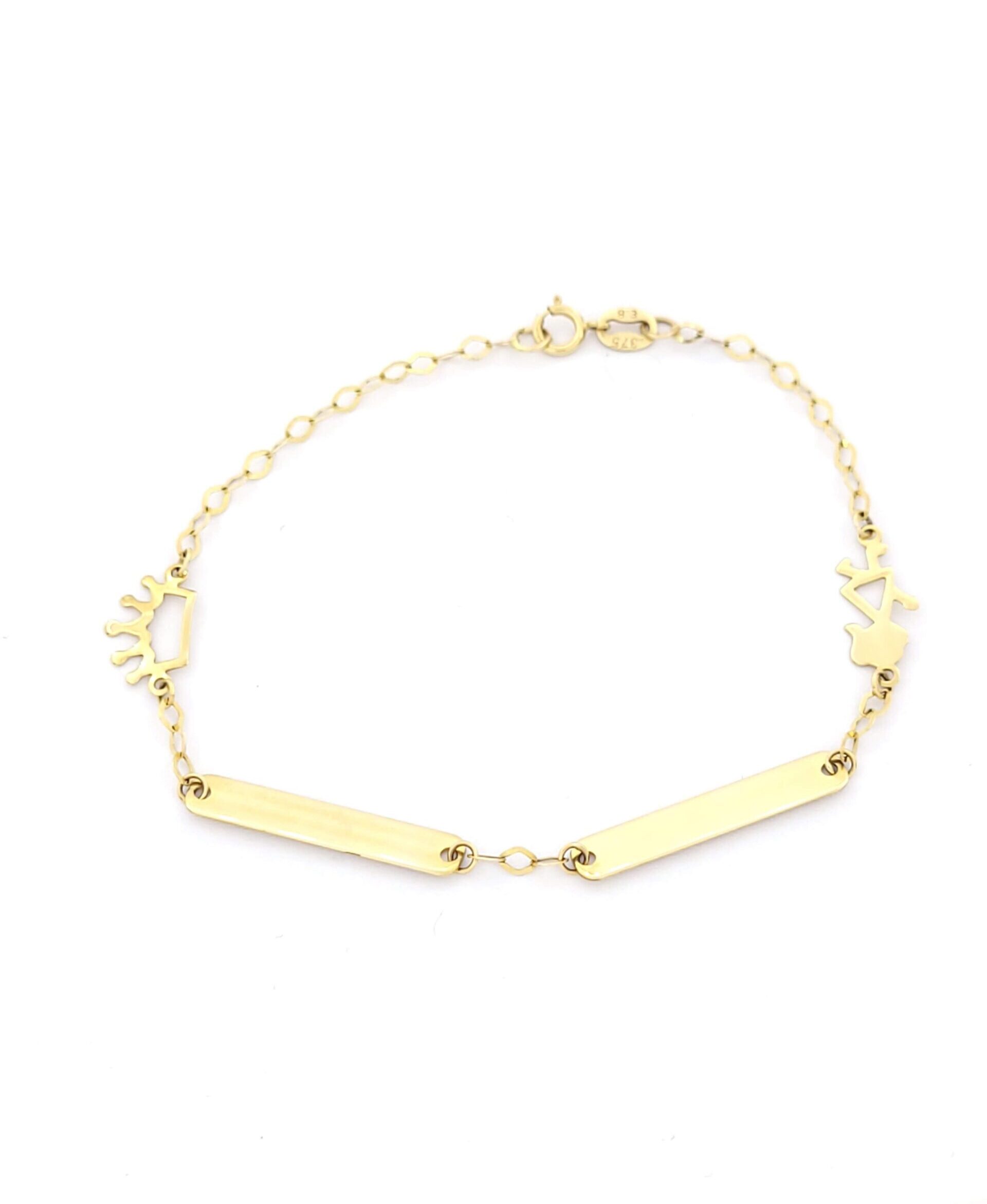 Χρυσό Παιδικό Βραχιόλι Με Διπλή Ταυτότητα Κ9,Με Κορονίτσα και Κοριτσάκι κωδ.102360