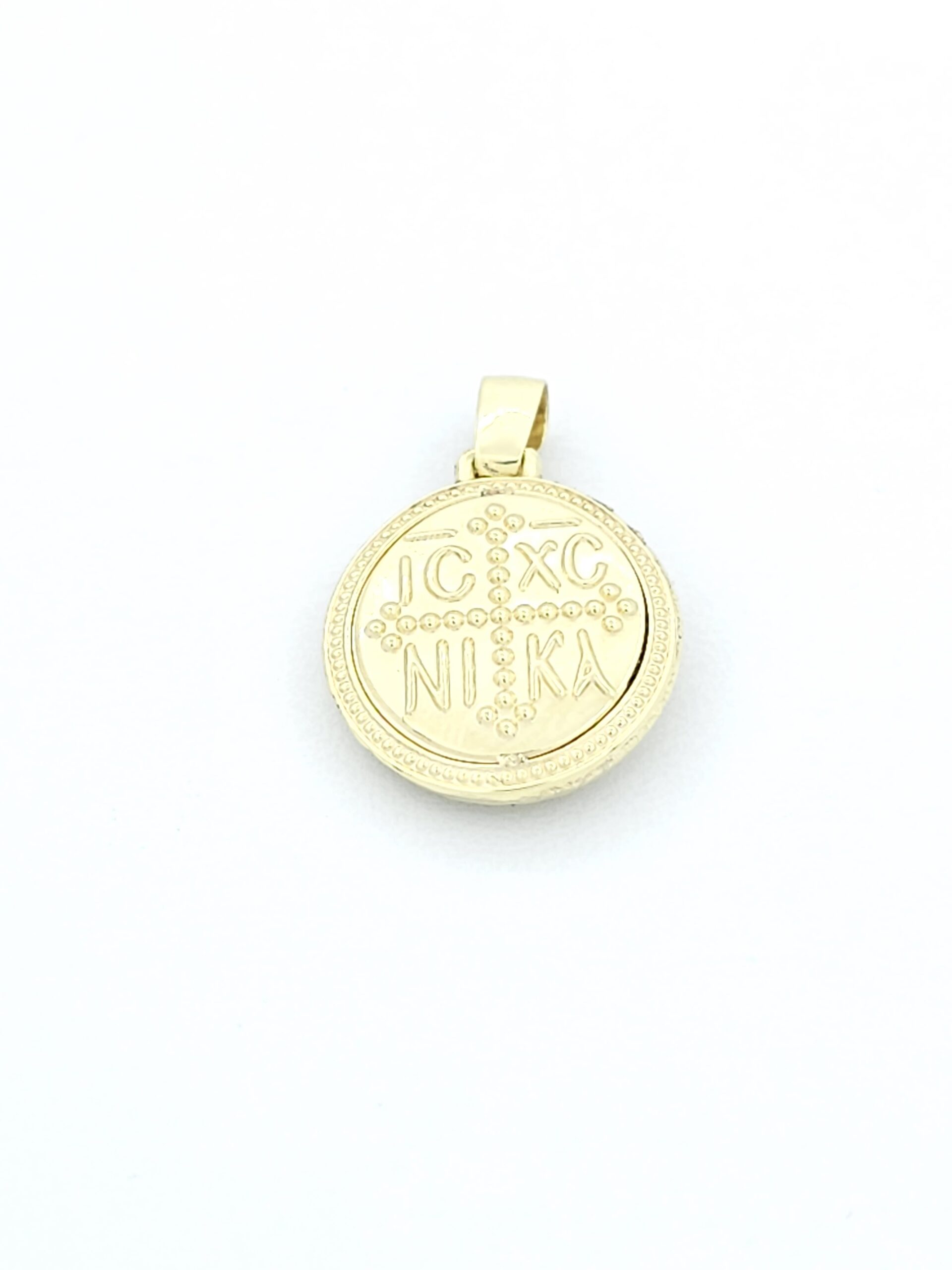 Χρυσό Κρεμαστό Διπλής Όψης K14, Με Κωνσταντινάτο Και Tην Αναπαράσταση Tων Αγίων Κωνσταντίνου Και Ελένης κωδ.109503