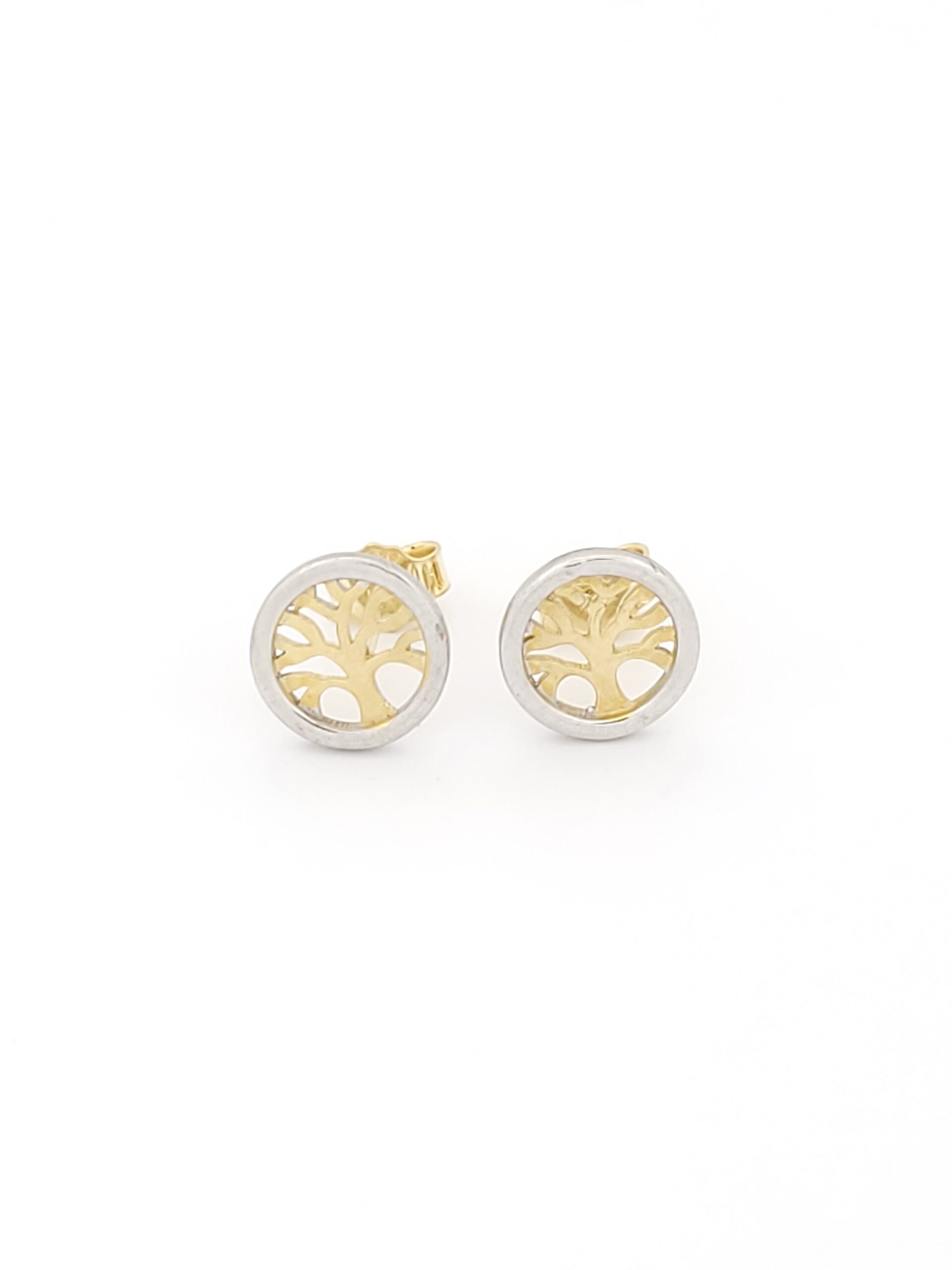 Χρυσά Δίχρωμα Γυναικεία Σκουλαρίκια Καρφωτά Κ14, Με Δέντρο της Ζωής κωδ.106448