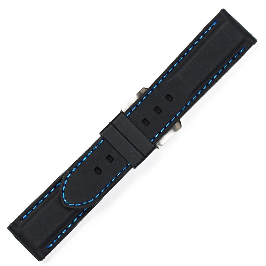 Λουρί Καουτσούκ Μαύρο με Μπλε Ραφή,No20 με Ασημί Τοκά κωδ.8834Ν20BB