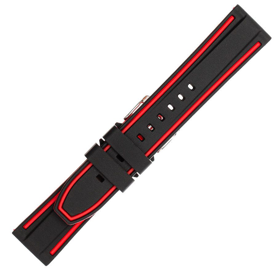 Λουρί Καουτσούκ Μαύρο-Κόκκινο,No22 με Ασημί Τοκά κωδ.8842N22BR