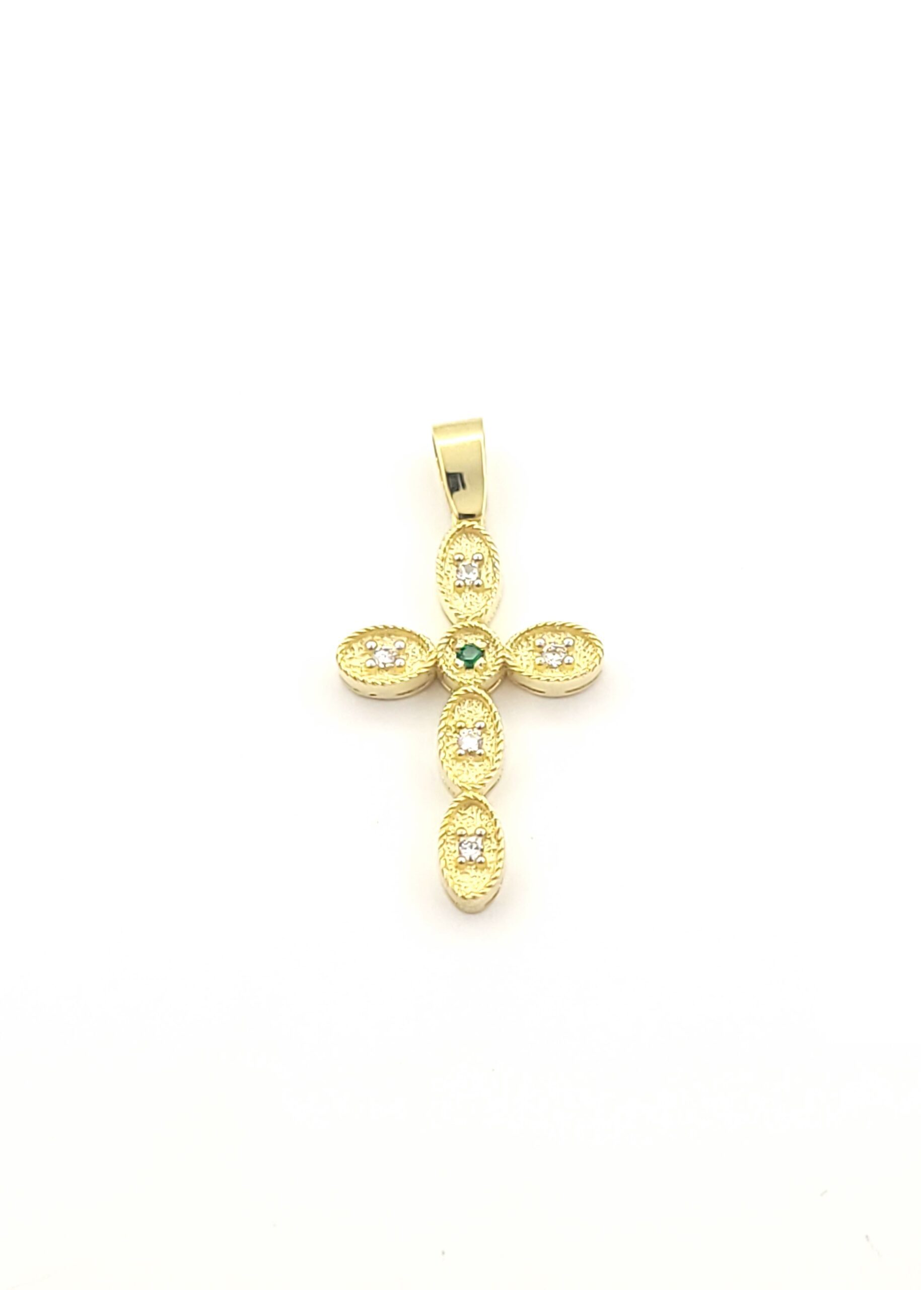 Xρυσός Γυναικείος Σταυρός Κ14,Mατ Με Λευκά και Πράσινο Ζιργκόν κωδ.107369