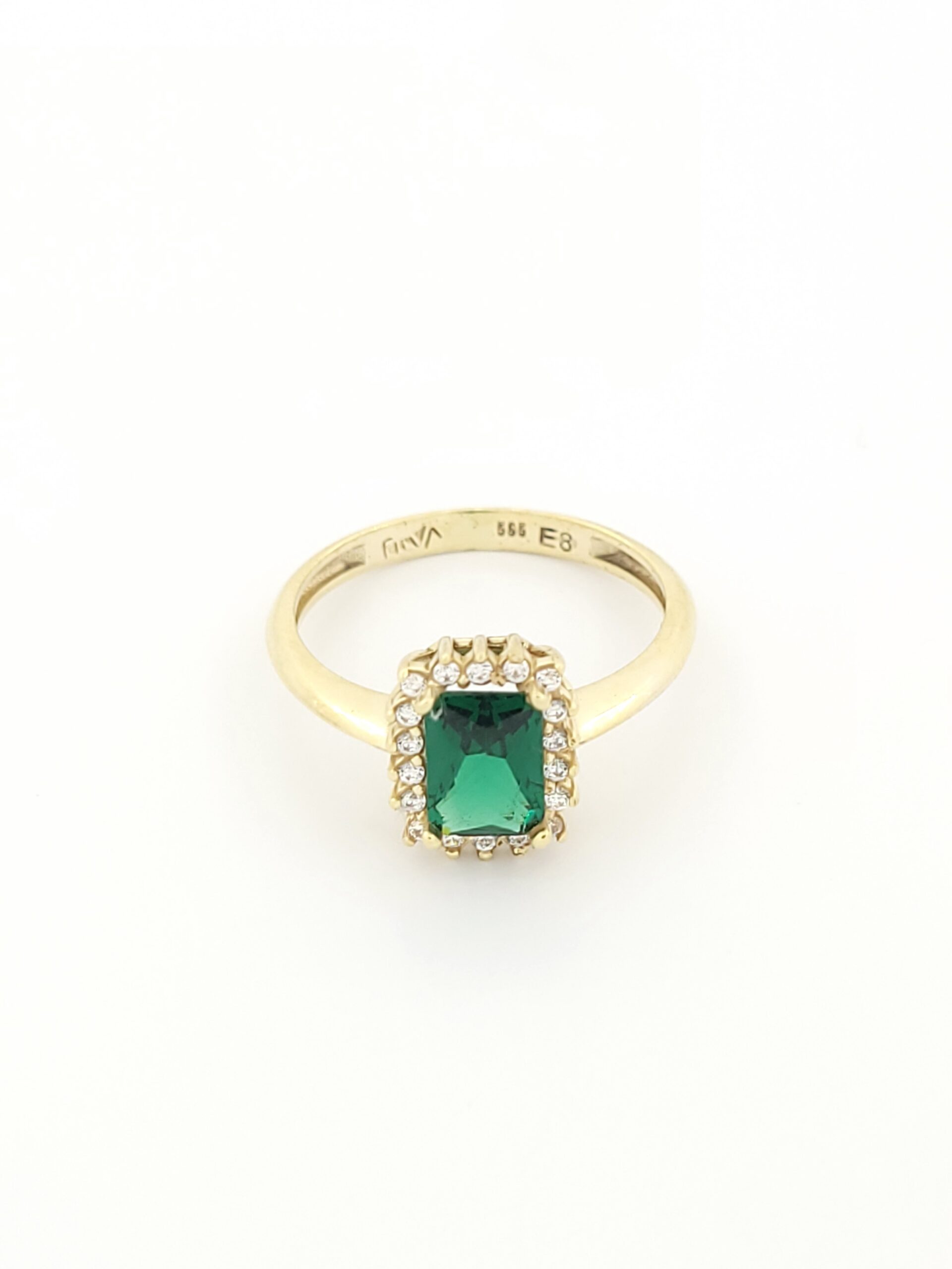 Χρυσό Γυναικείο Δαχτυλίδι Ροζέτα Κ14 Της Filva, Με Πράσινο Και Λευκά Ζιργκόν κωδ.106483