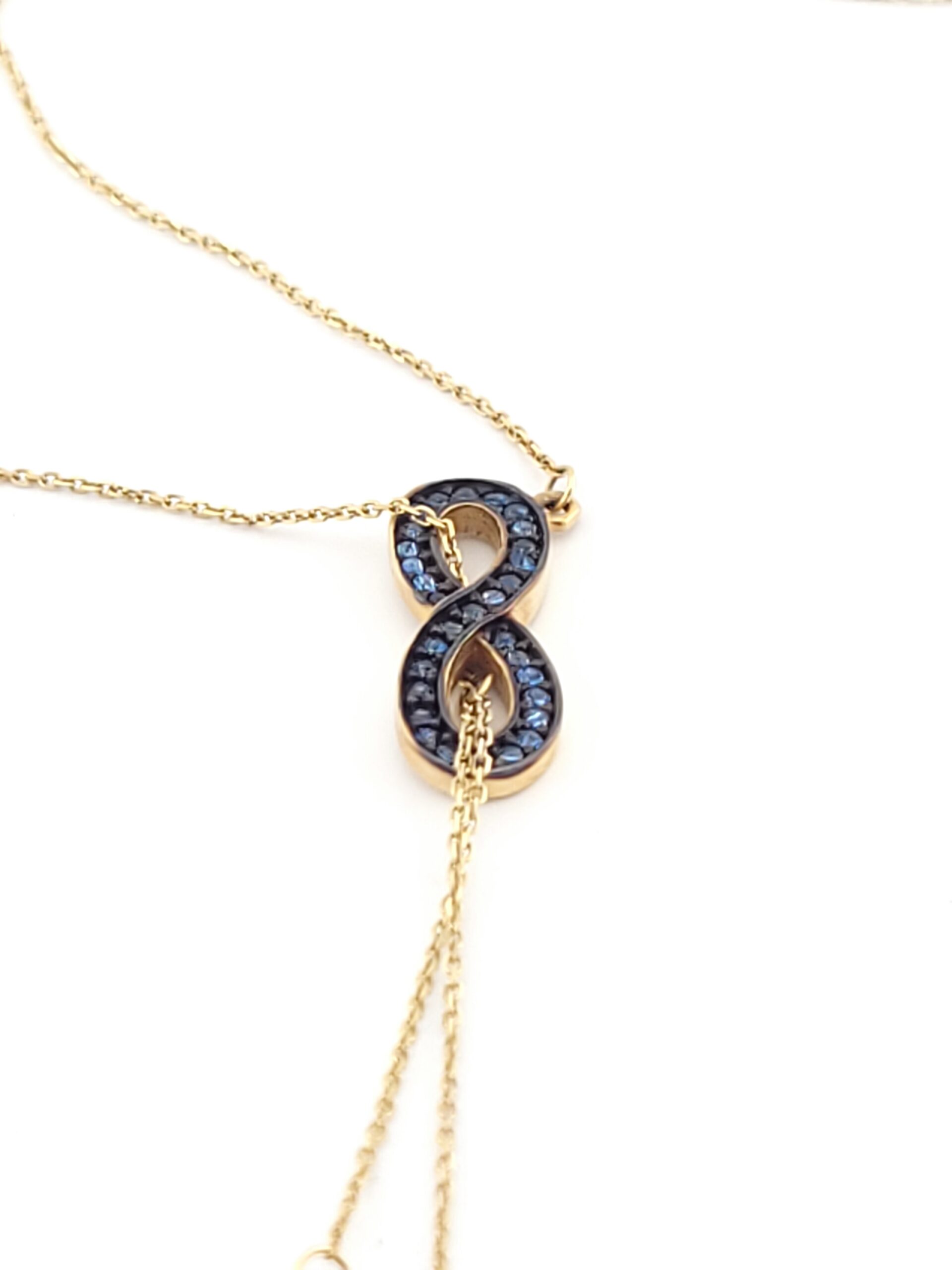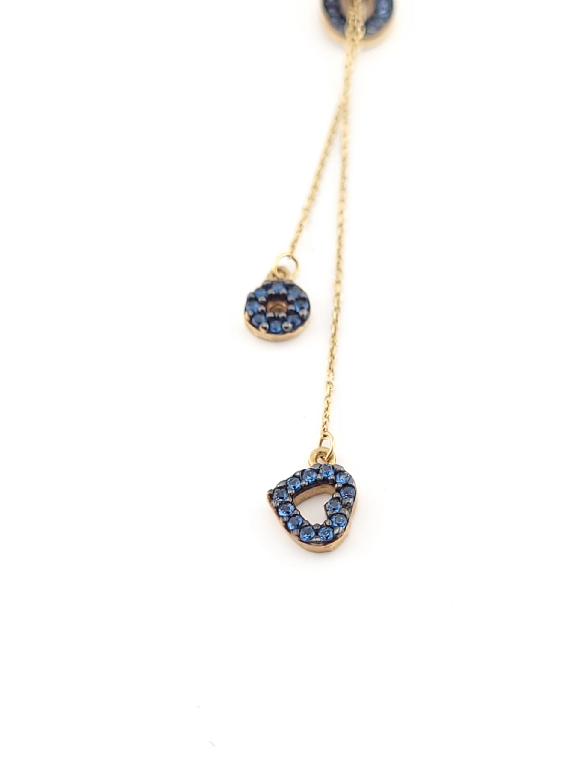 Χρυσό Γυναικείο Κολιέ Κ14, Με Άπειρο, Με Καρδιά, Με Μπλε Ζιργκόν