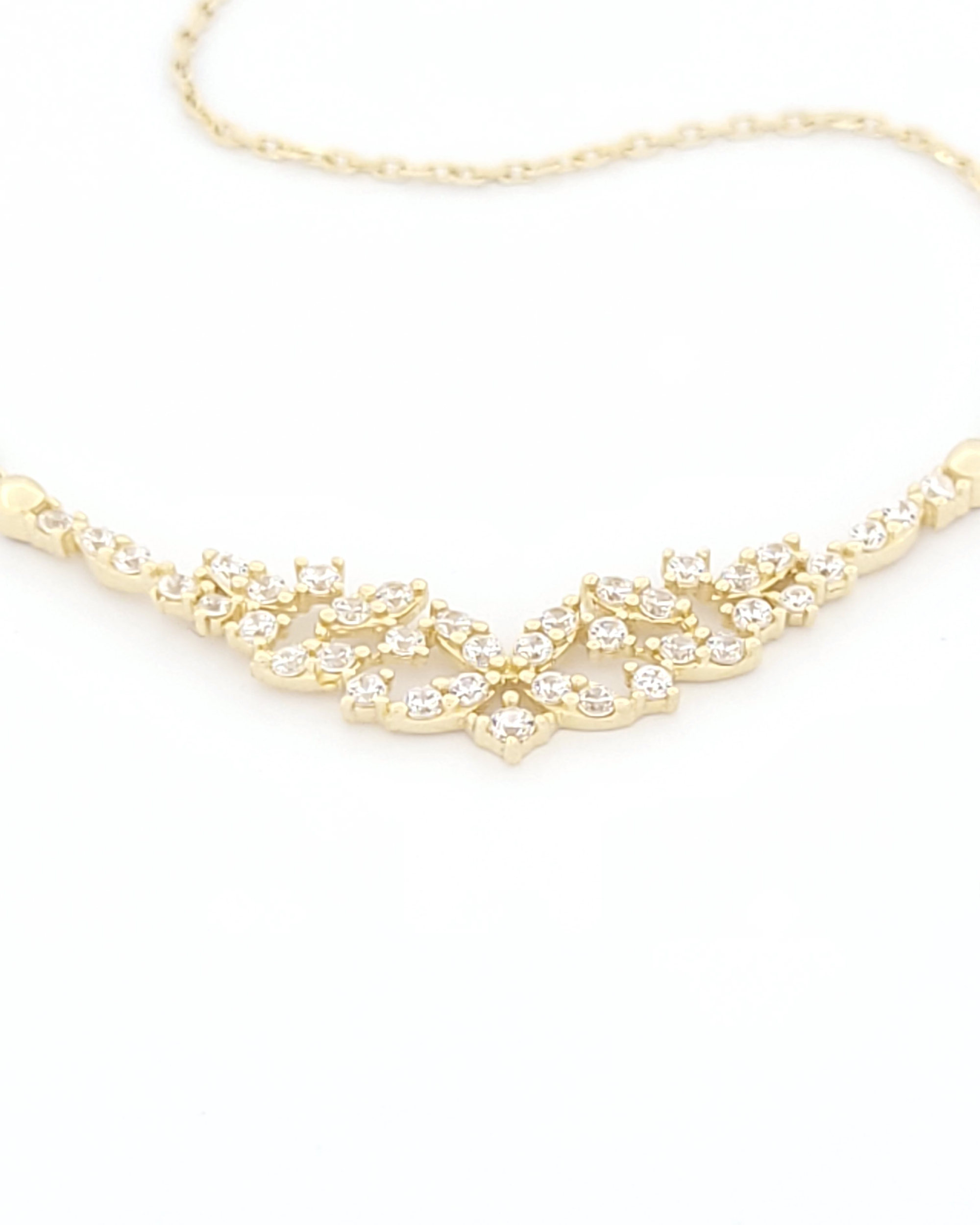 Χρυσό Γυναικείο Κολιέ Κ14 , Με Λευκά Ζιργκόν