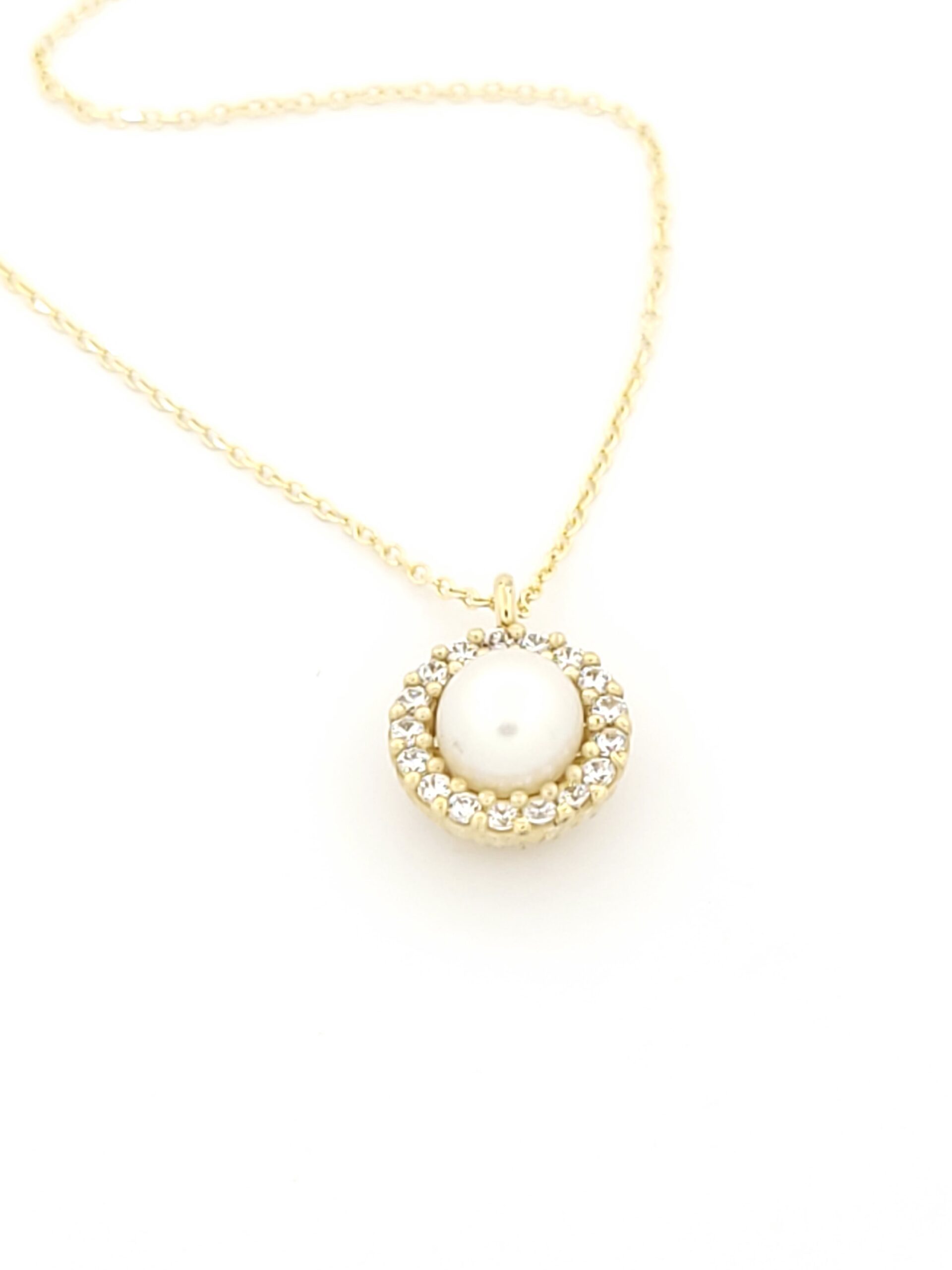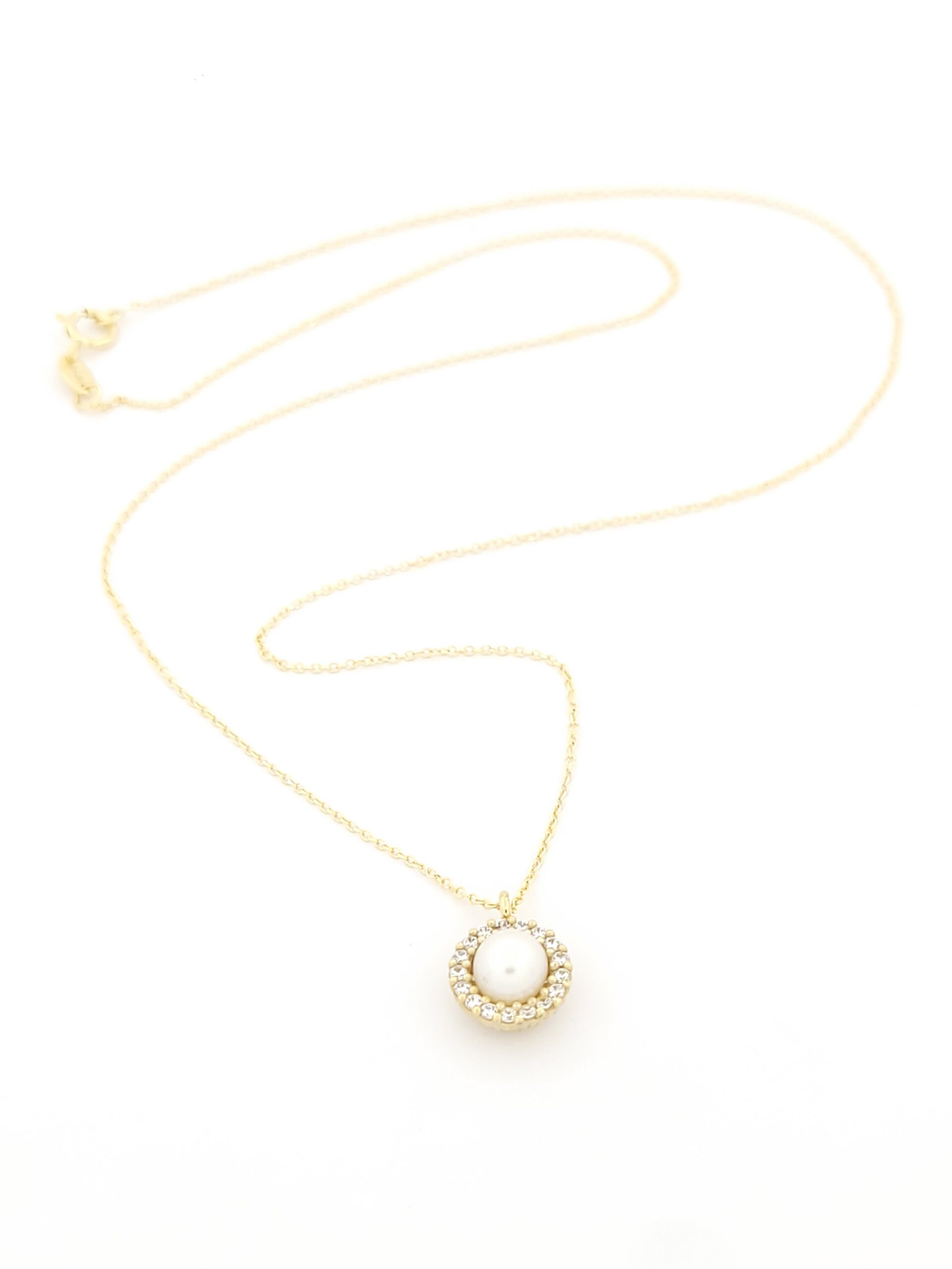 Χρυσό Γυναικείο Κολιέ Κ14, Με Μαργαριτάρι Και Ζιργκόν