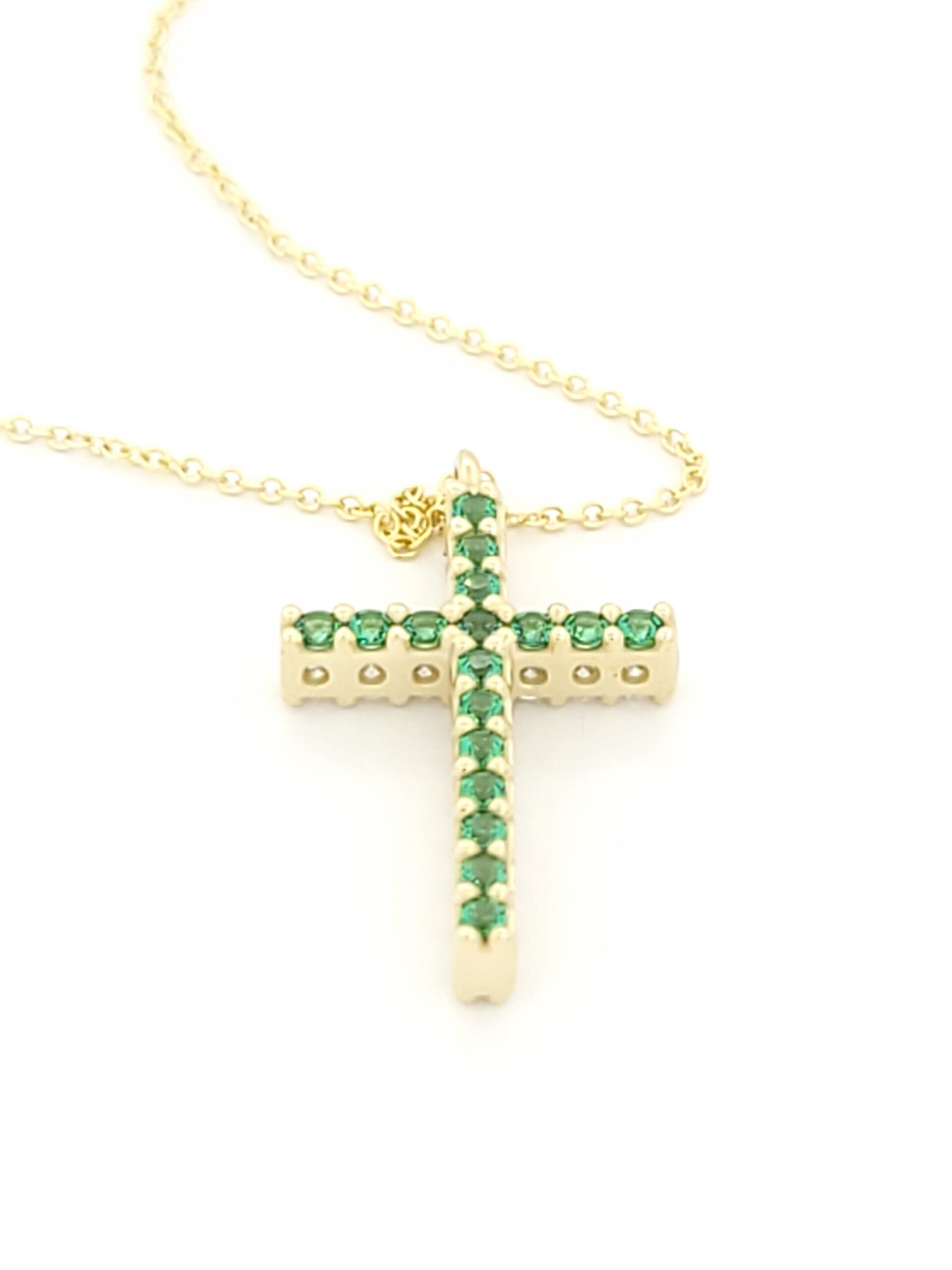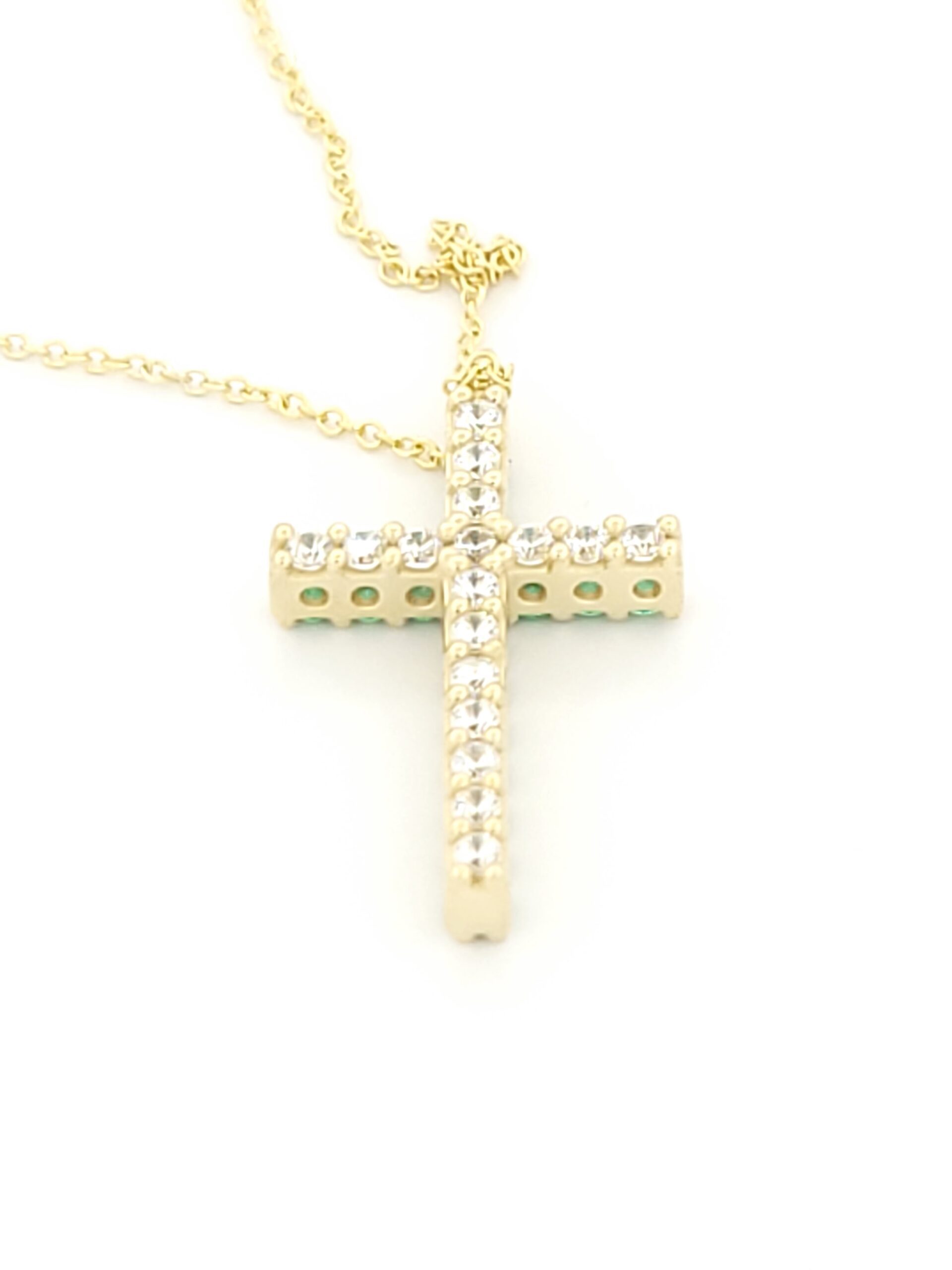 Χρυσό Γυναικείο Κολιέ Κ14, Με Σταυρό Διπλής Όψης Με Λευκά Και Πράσινα Ζιργκόν