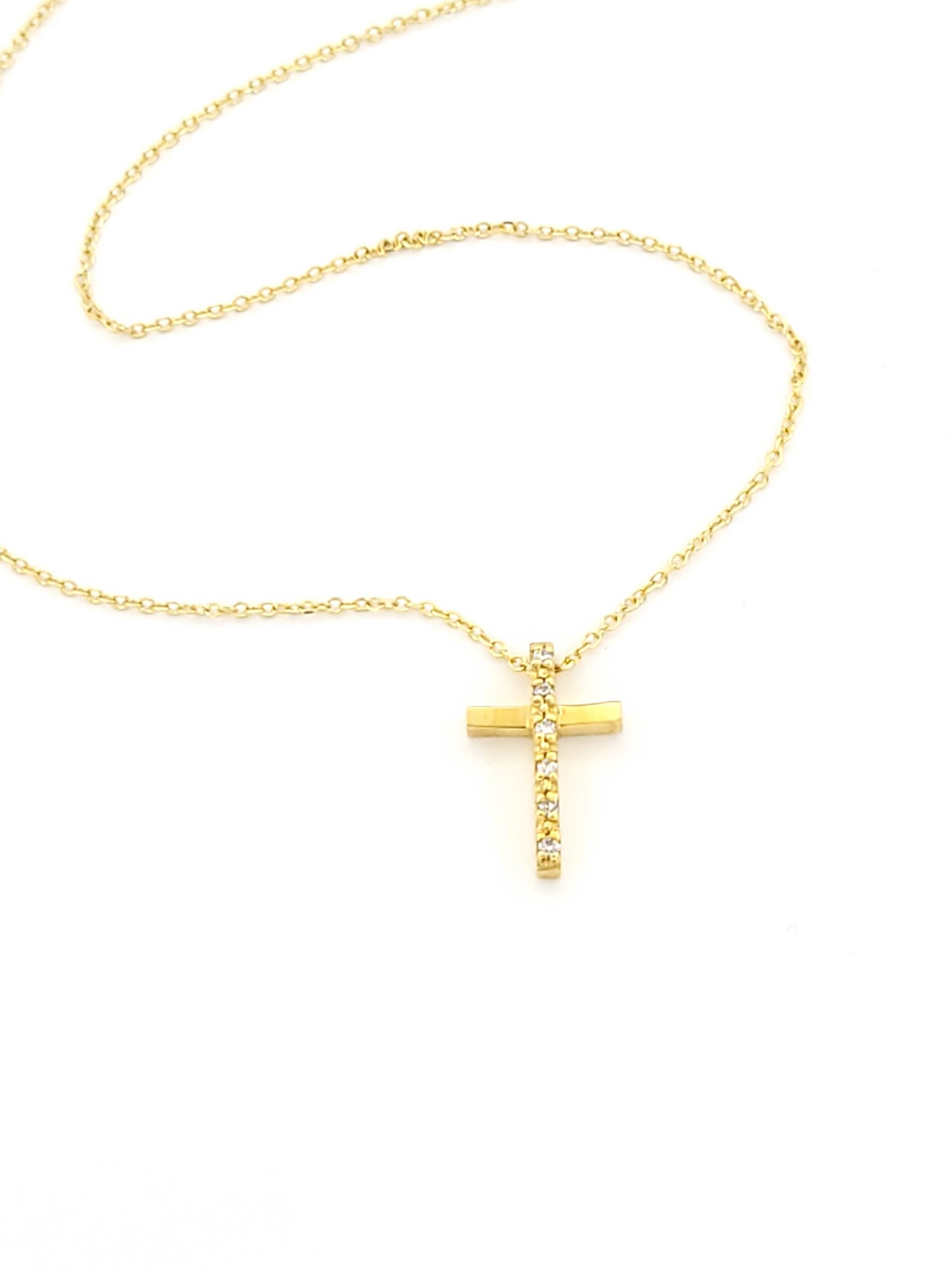 Χρυσό Γυναικείο Κολιέ Κ14, Με Σταυρό Και Διαμάντια