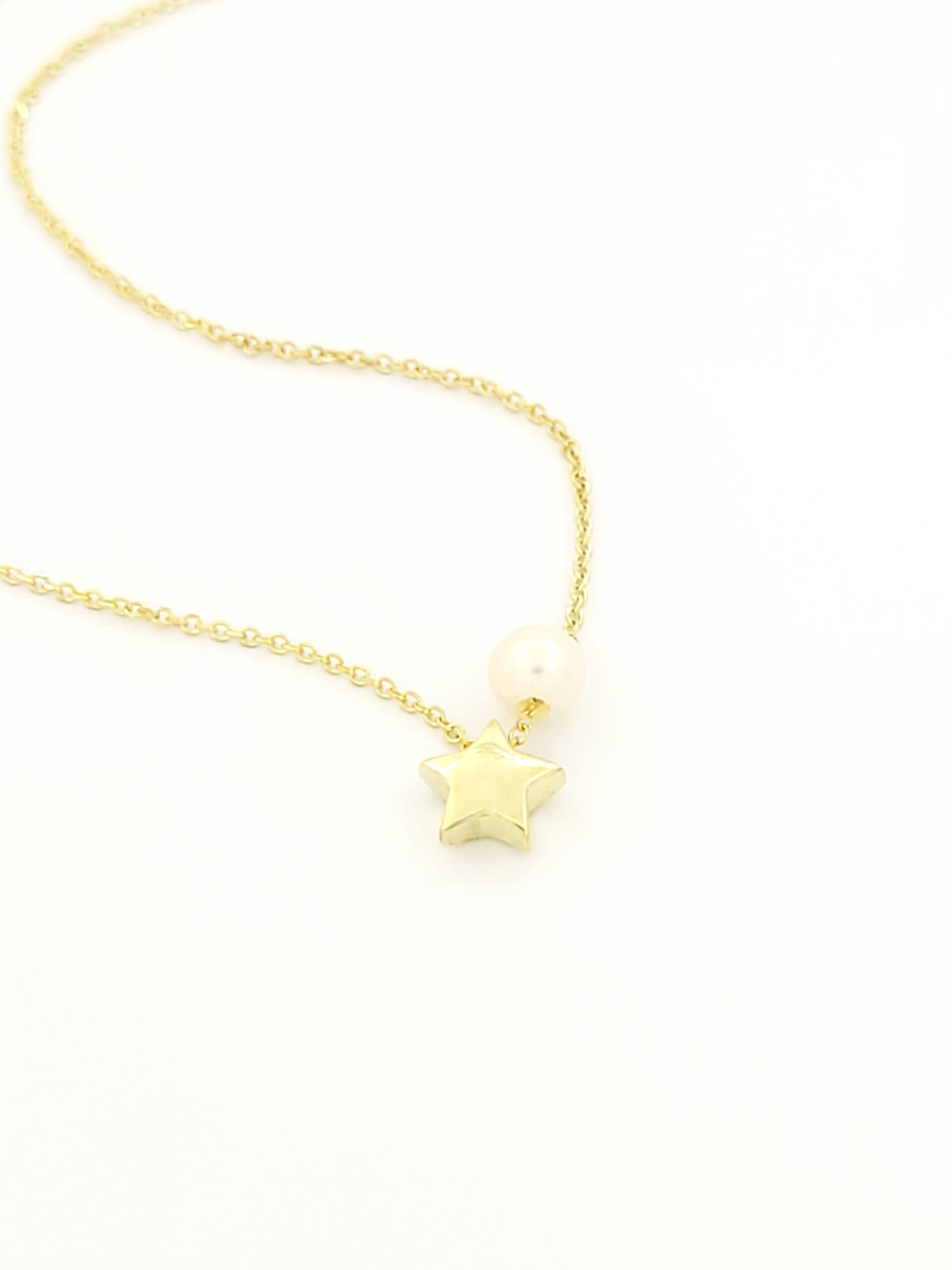 Χρυσό Γυναικείο Κολιέ Κ9, Με Αστεράκι Και Μαργαριτάρι