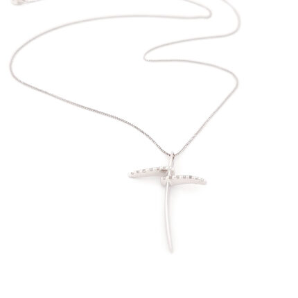 Λευκόχρυσο Γυναικείο Κολιέ Κ18, Με Σταυρό Και Διαμάντια κωδ.109749