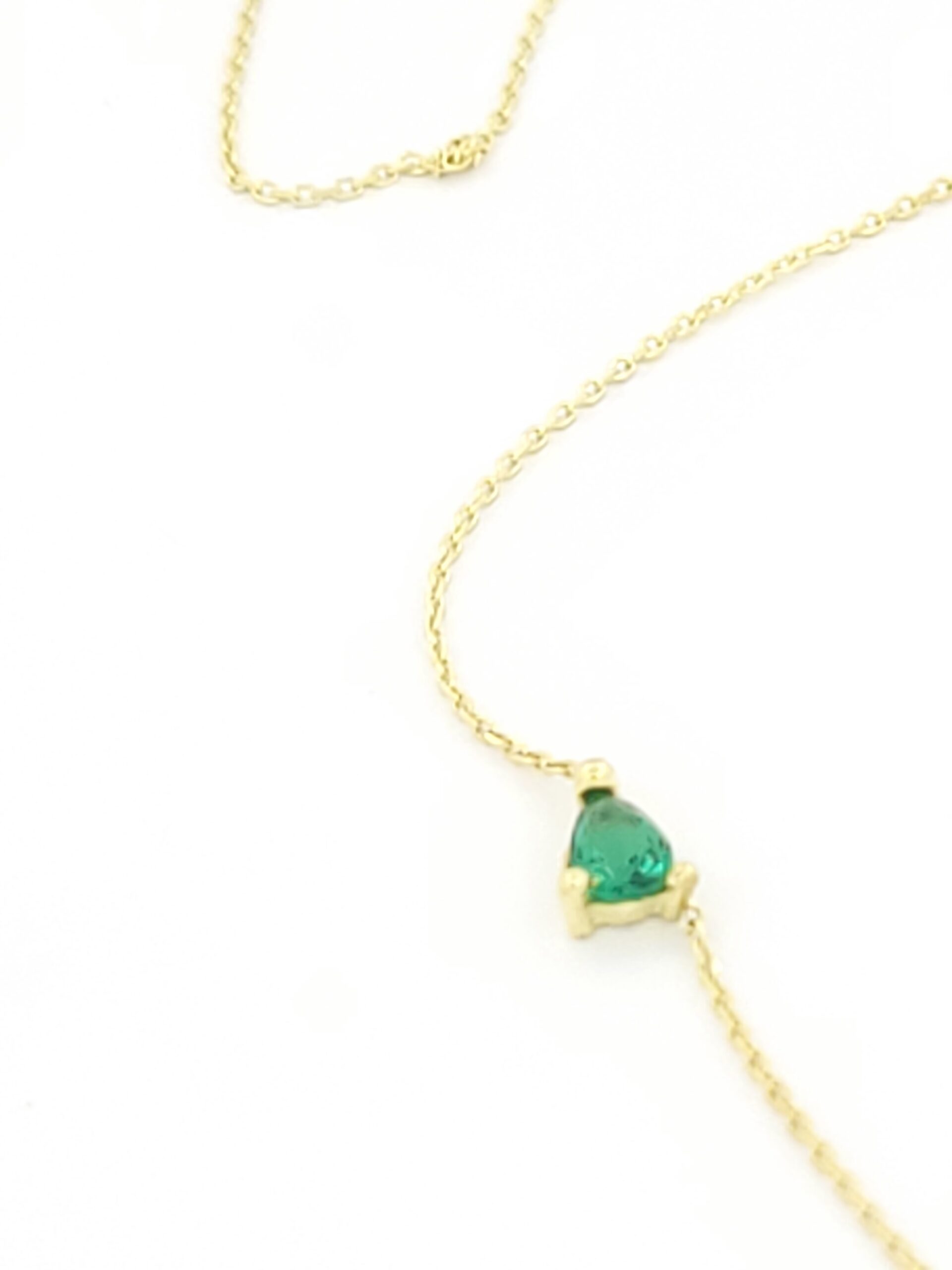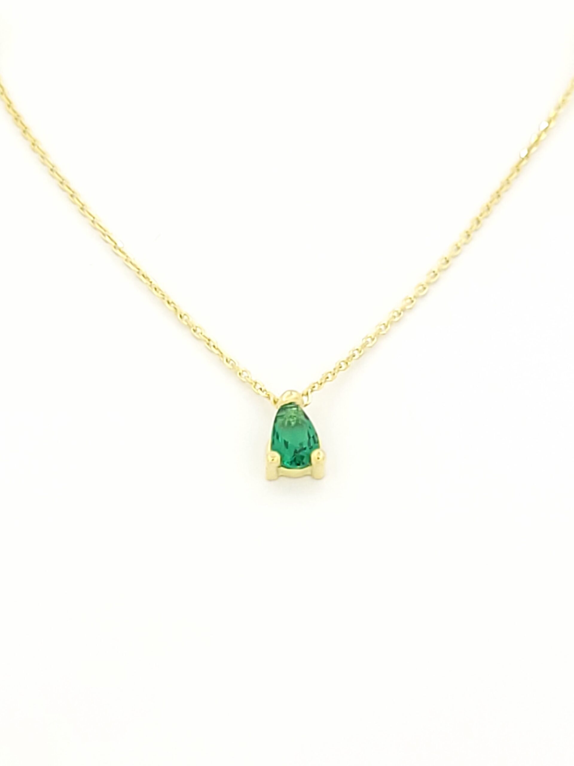 Χρυσό Γυναικείο Κολιέ Κ9, Με Δάκρυ Με Πράσινο Ζιργκόν